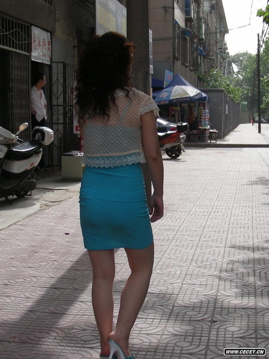 跟拍穿綠裙子的姐姐