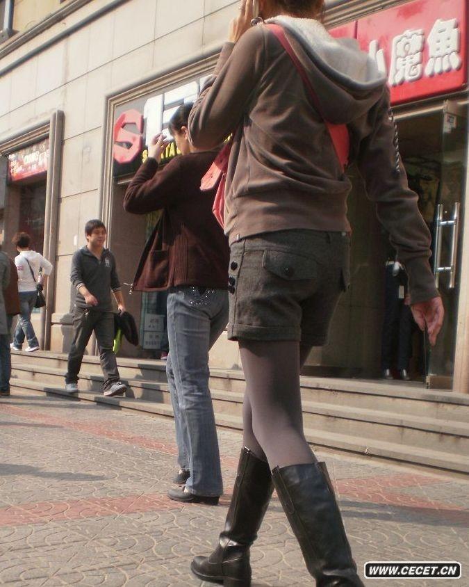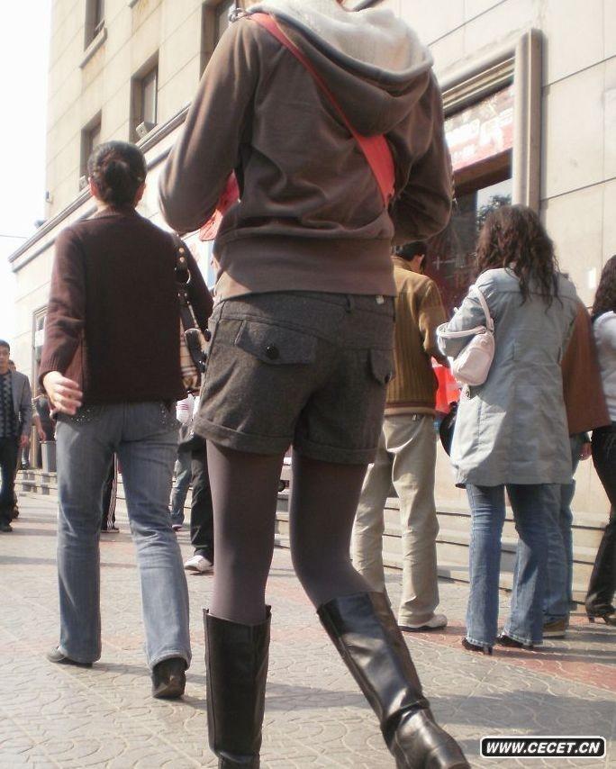 冬日短褲和褲襪裝扮
