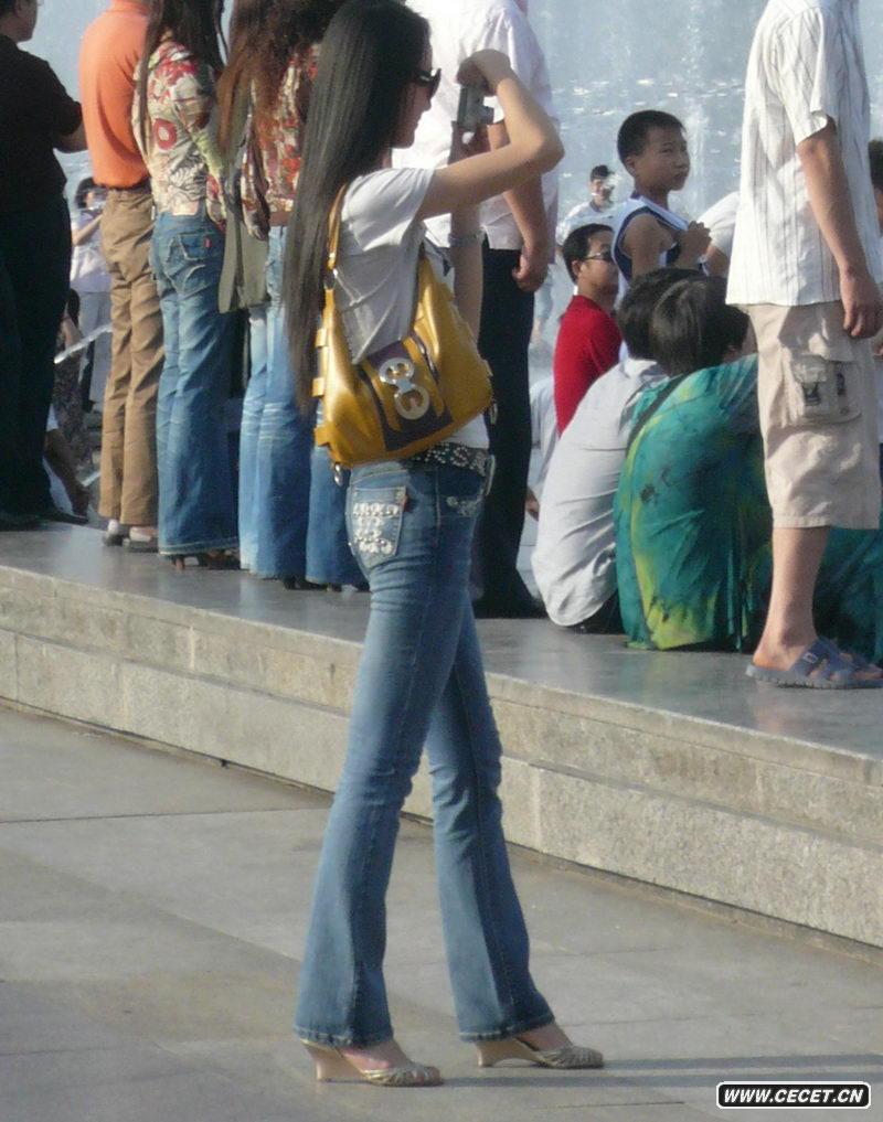 長(cháng)發(fā)牛仔褲絕色美女