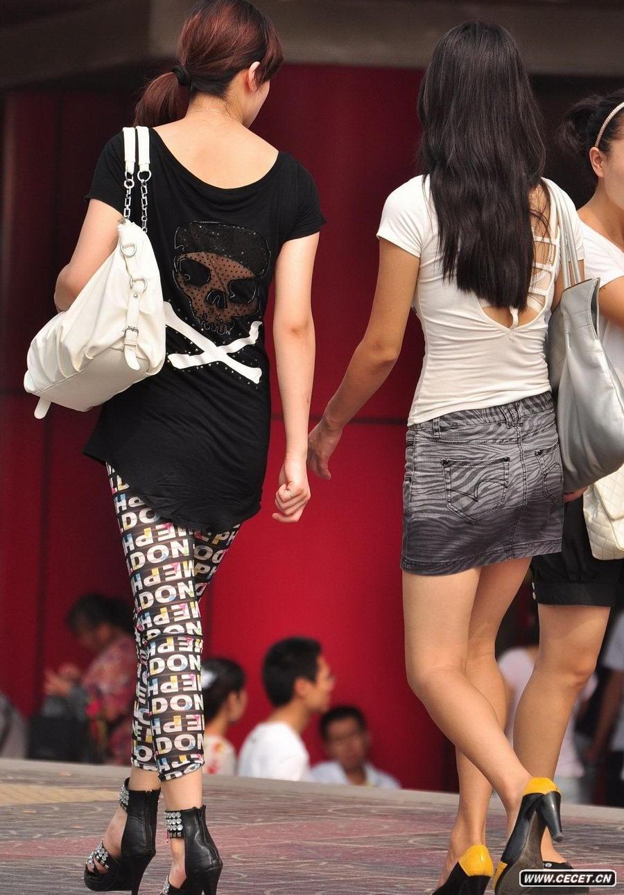 跟拍兩個(gè)穿著(zhù)時(shí)尚姐姐