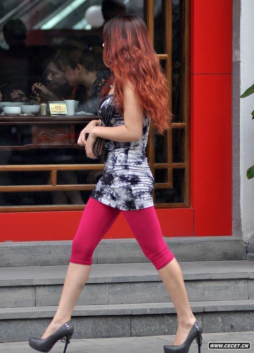 街拍穿紅絲襪的美女