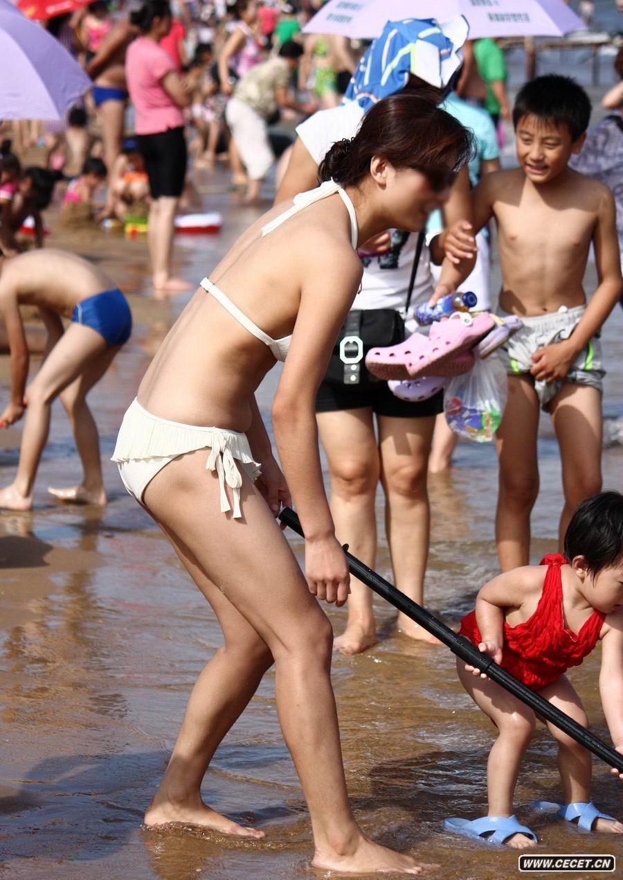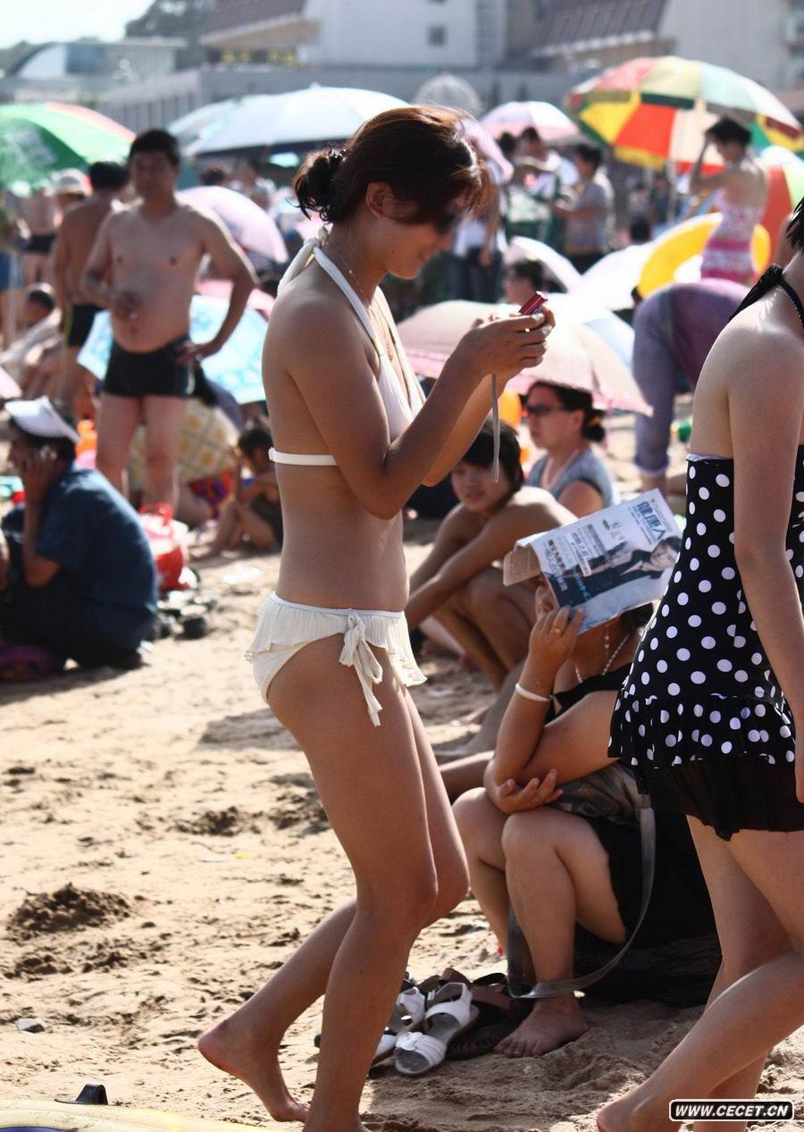 海邊的白色比基尼美女
