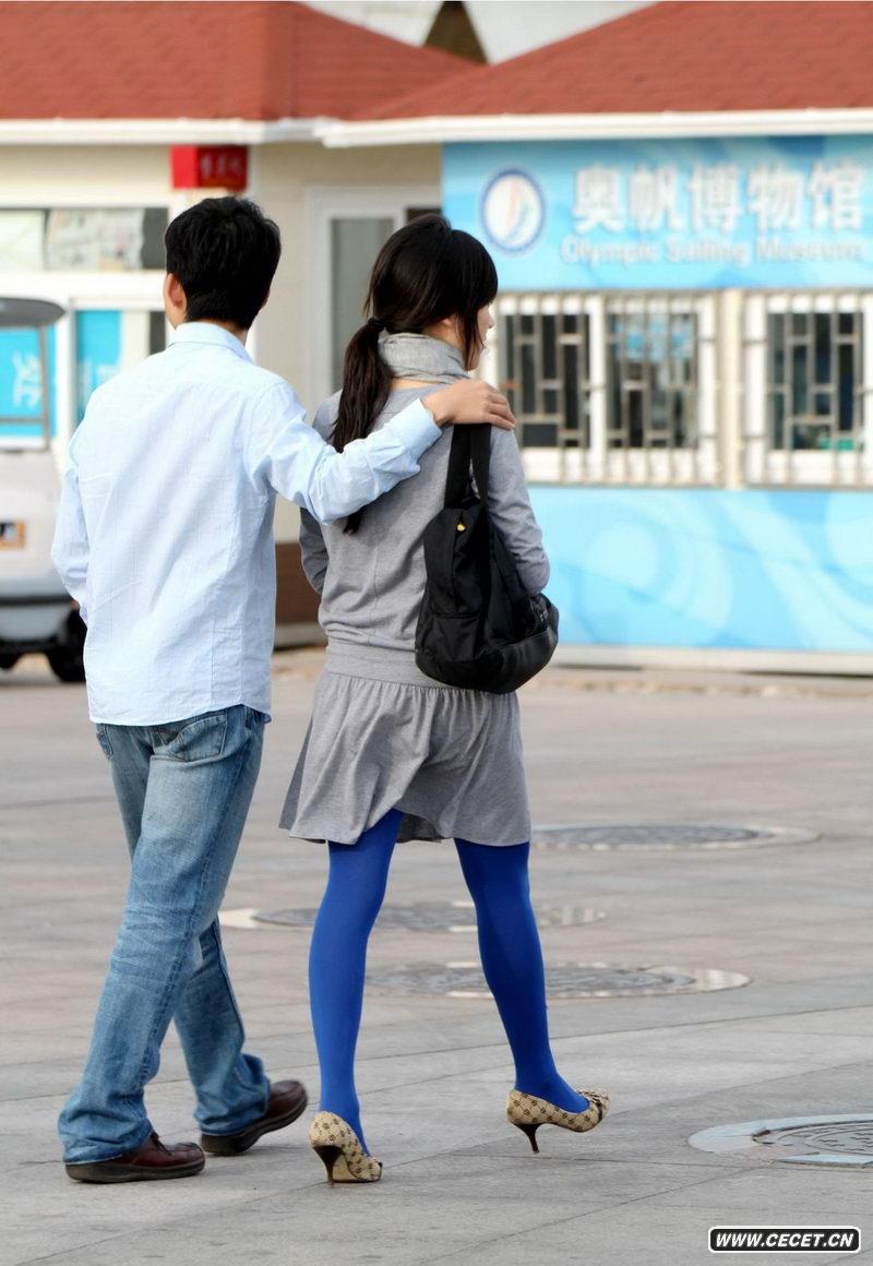 街拍藍色絲襪美腿