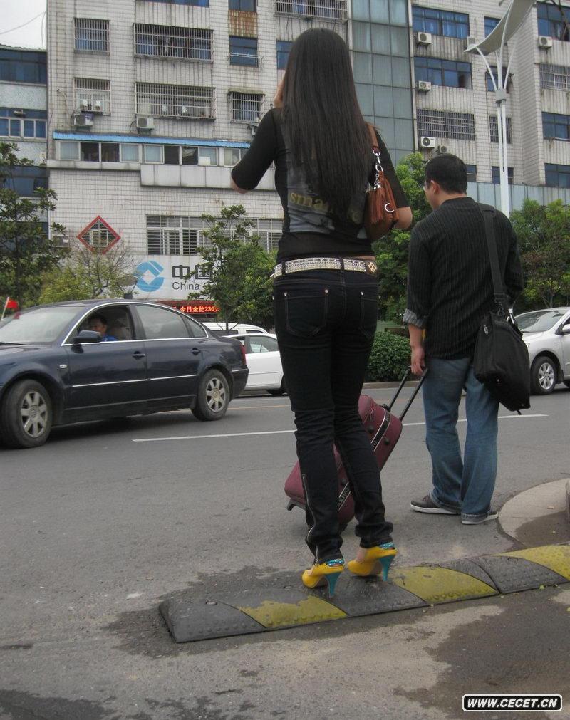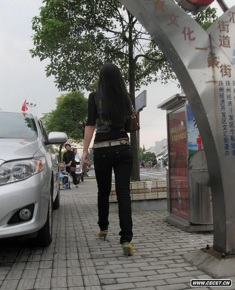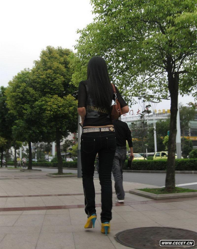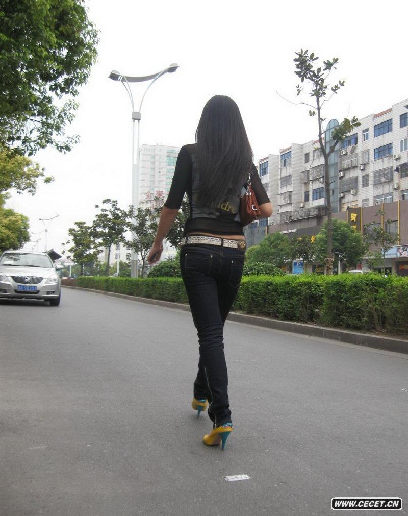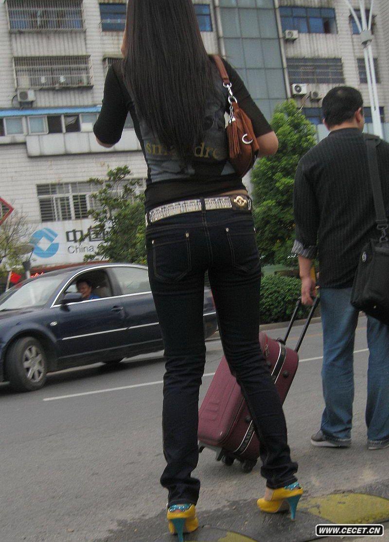 揚州街拍低腰緊身牛仔褲