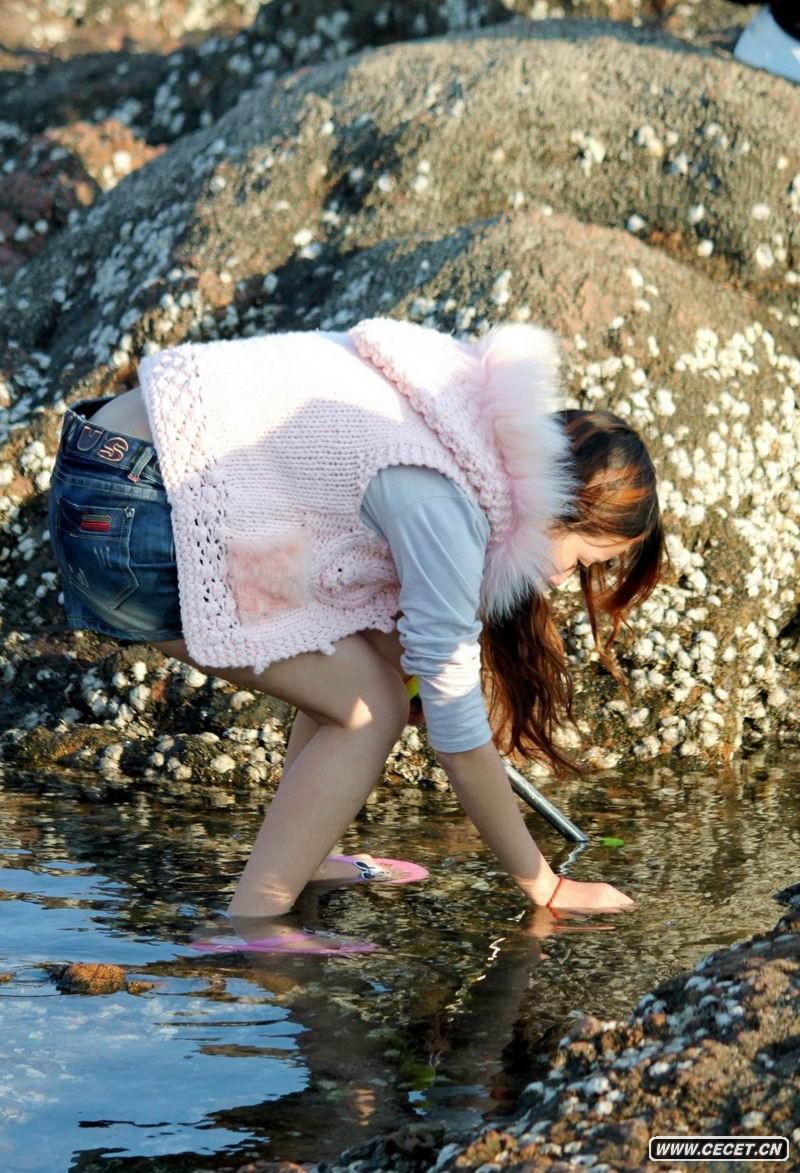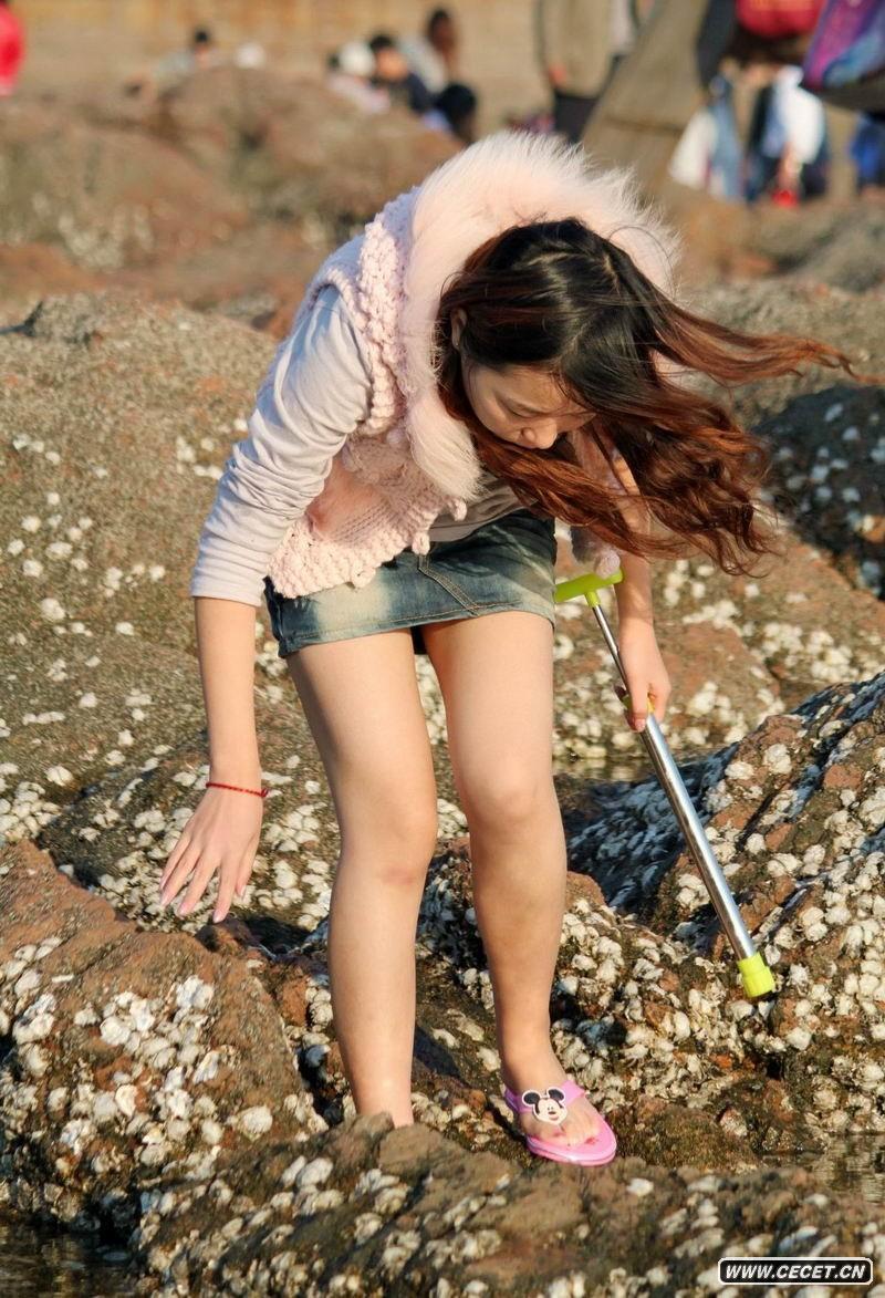 海邊撿貝殼的長(cháng)腿女生