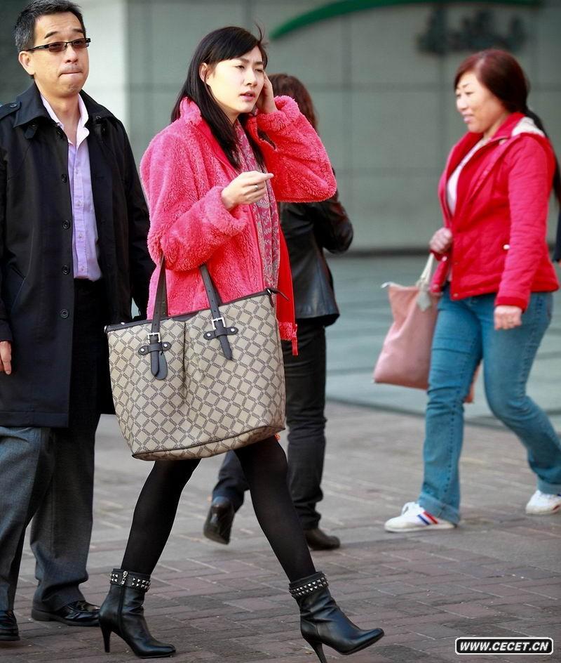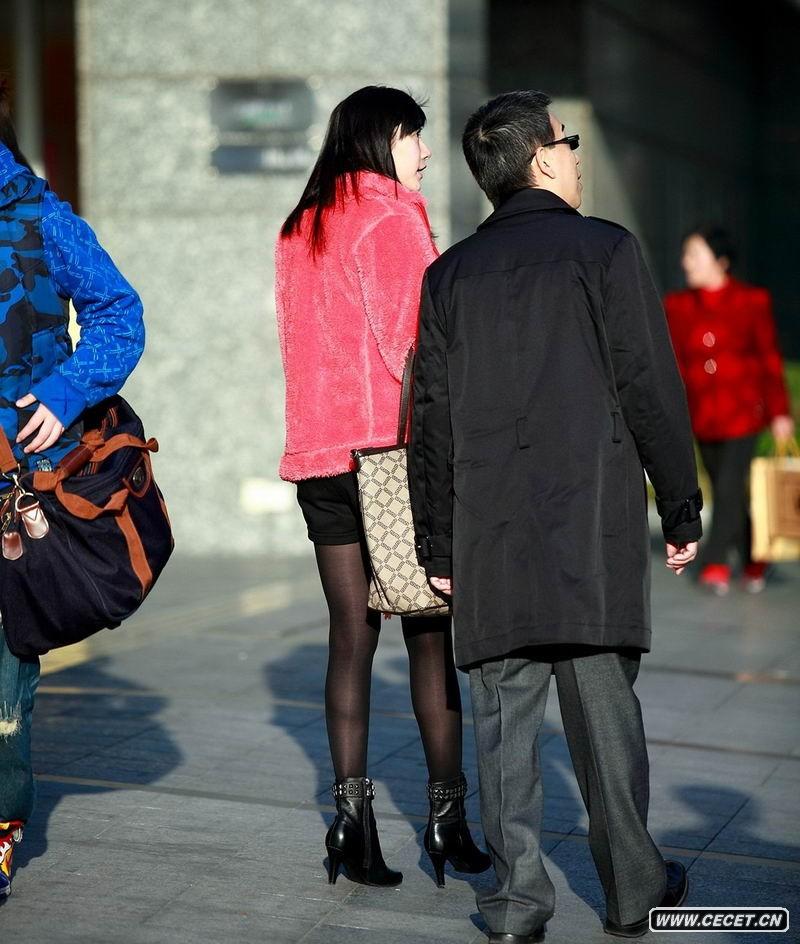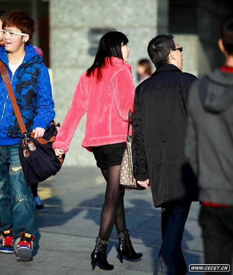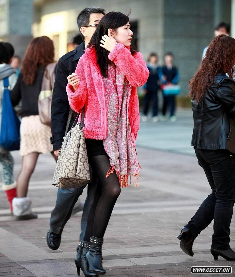 西單街拍逛街的黑絲襪女孩