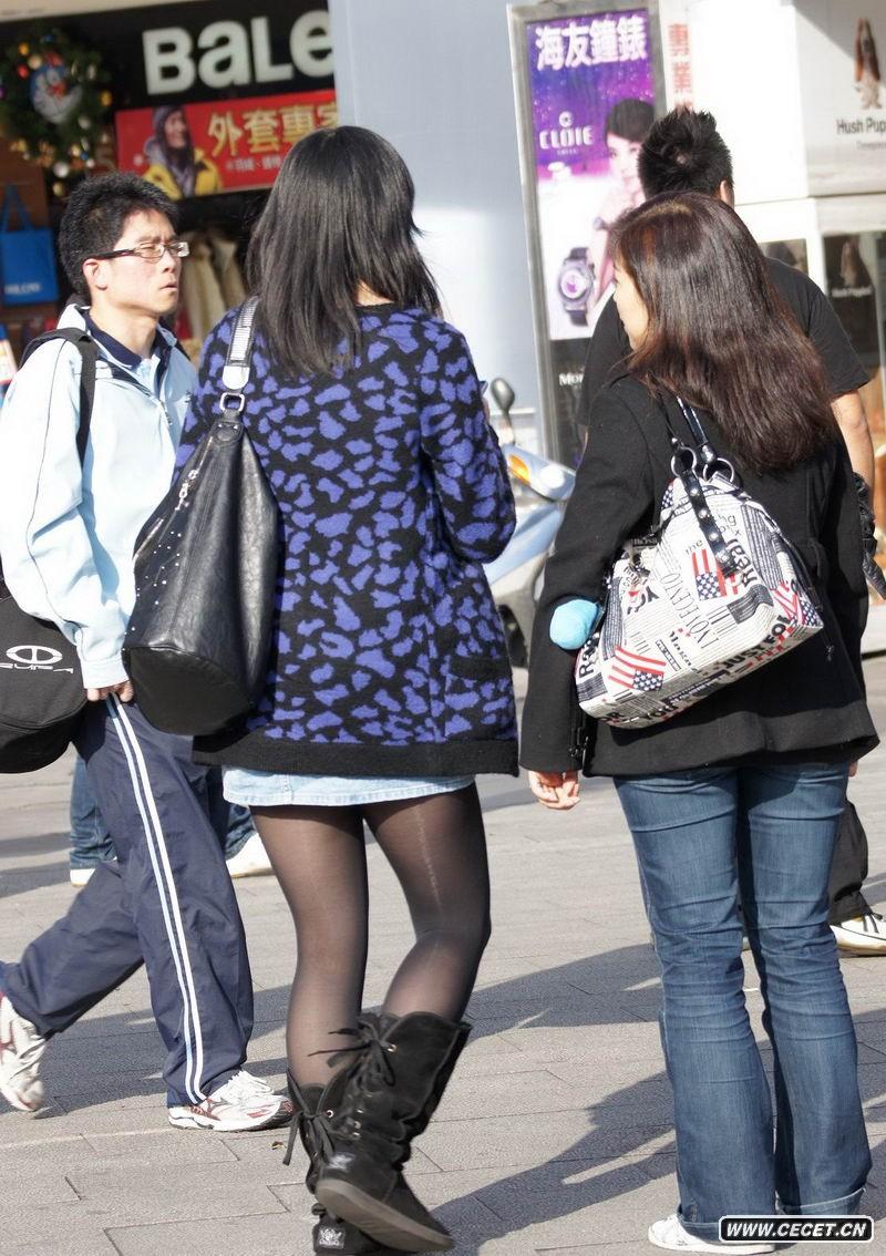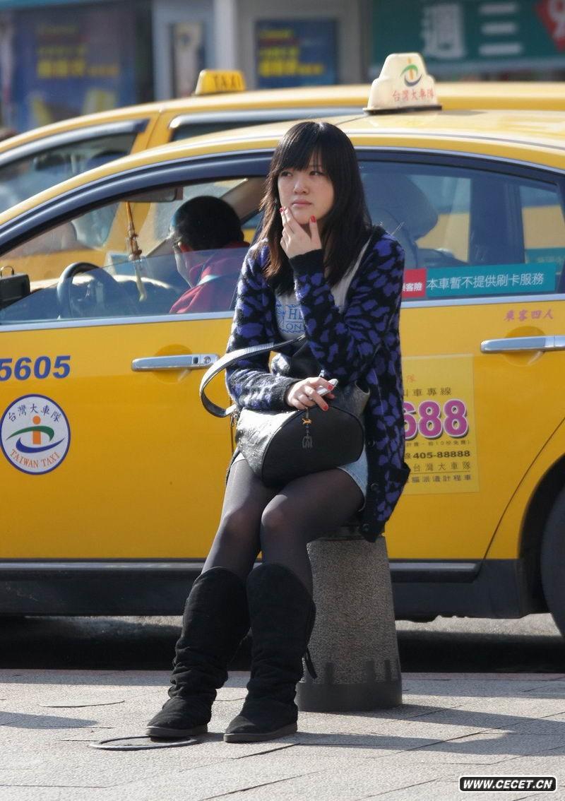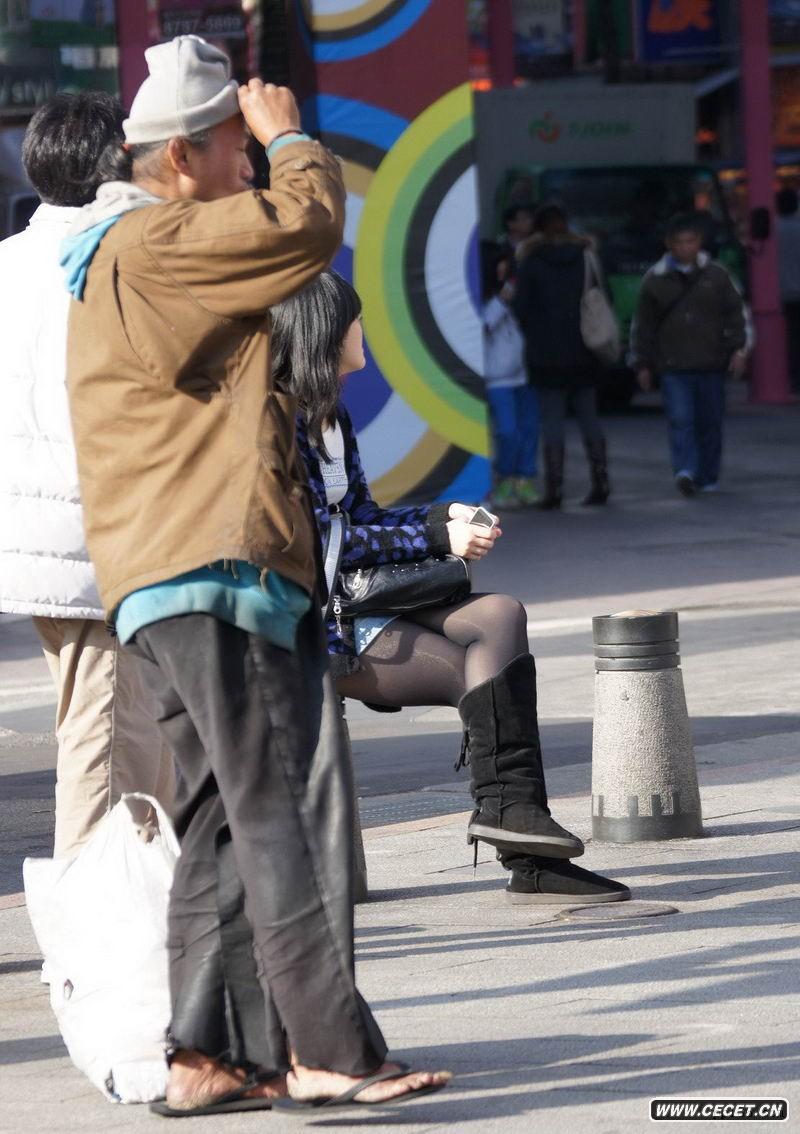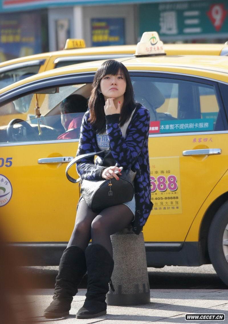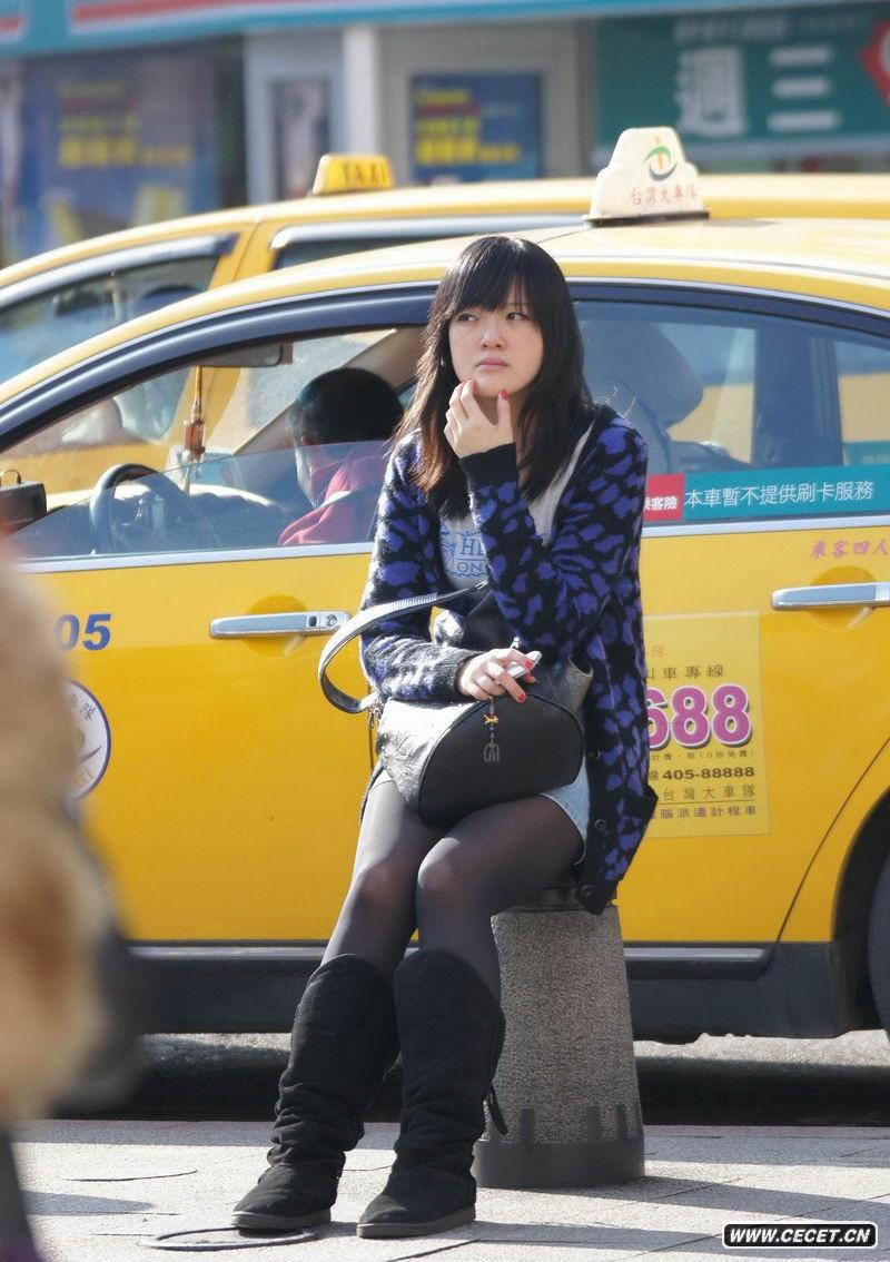 坐在石墩上的黑絲美眉