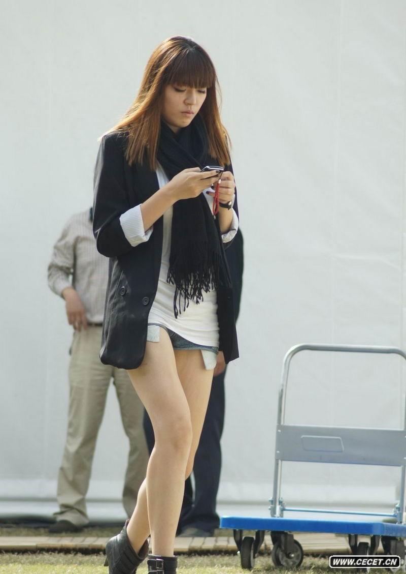 美女自己改的牛仔短褲