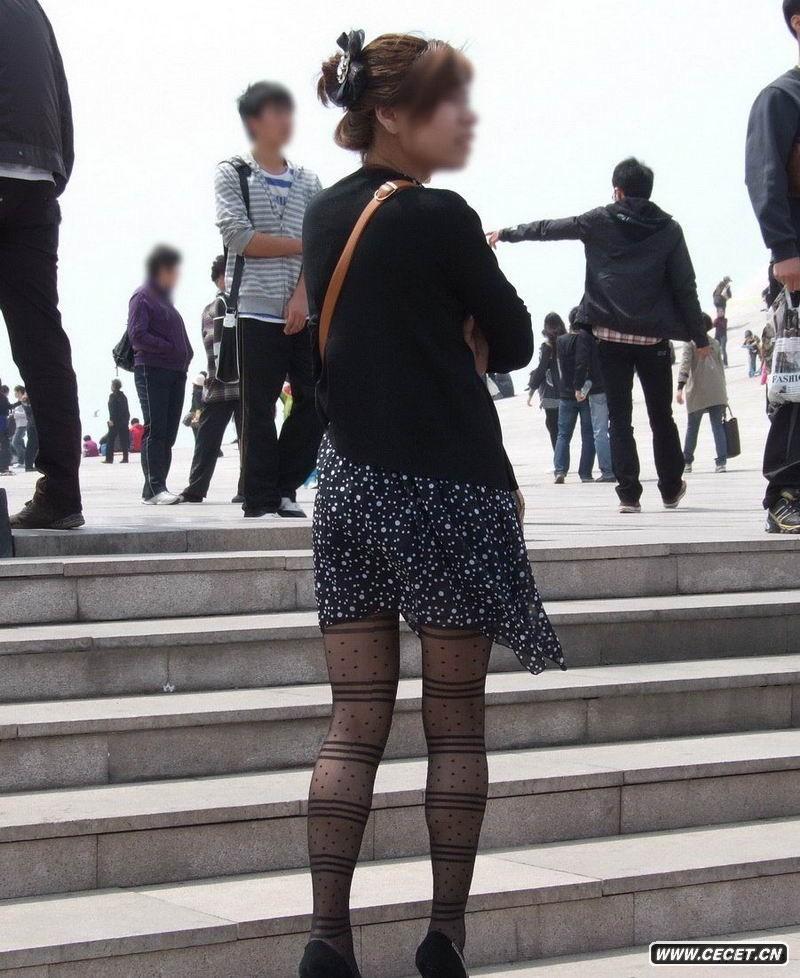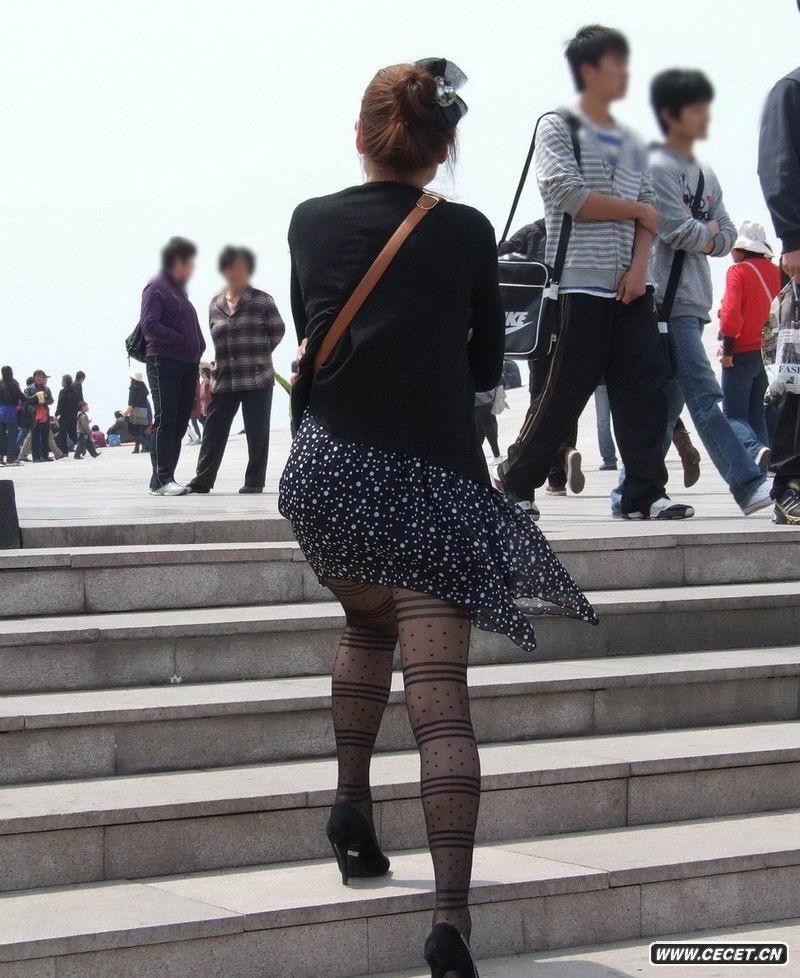 花裙飄揚的黑絲少婦