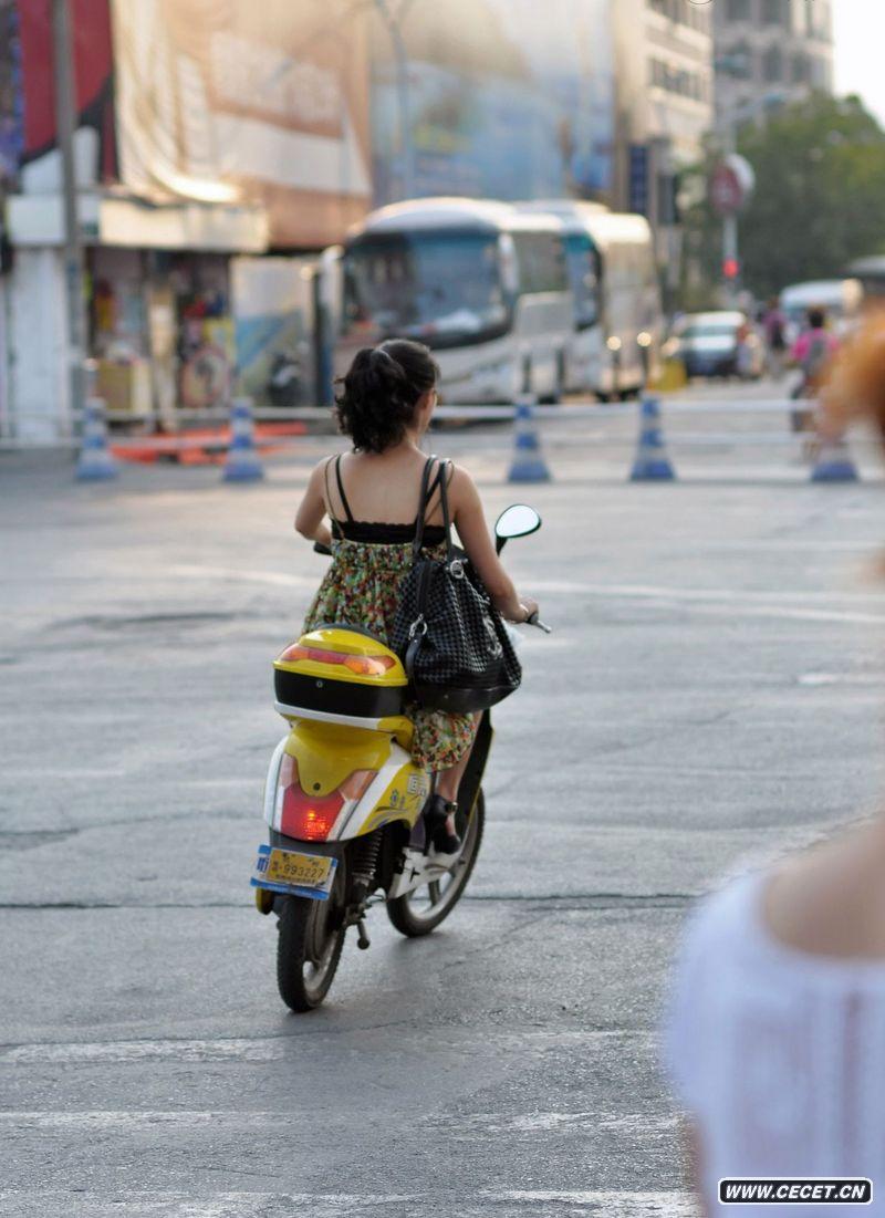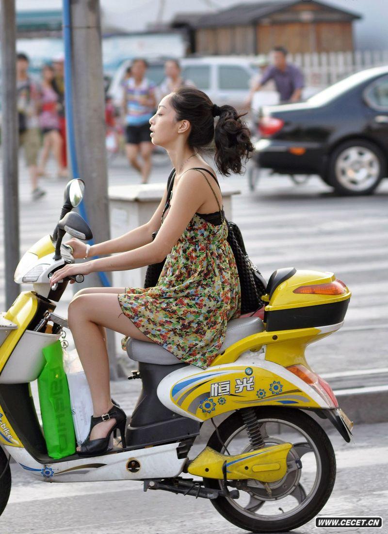 杭州街拍美腿摩托女郎