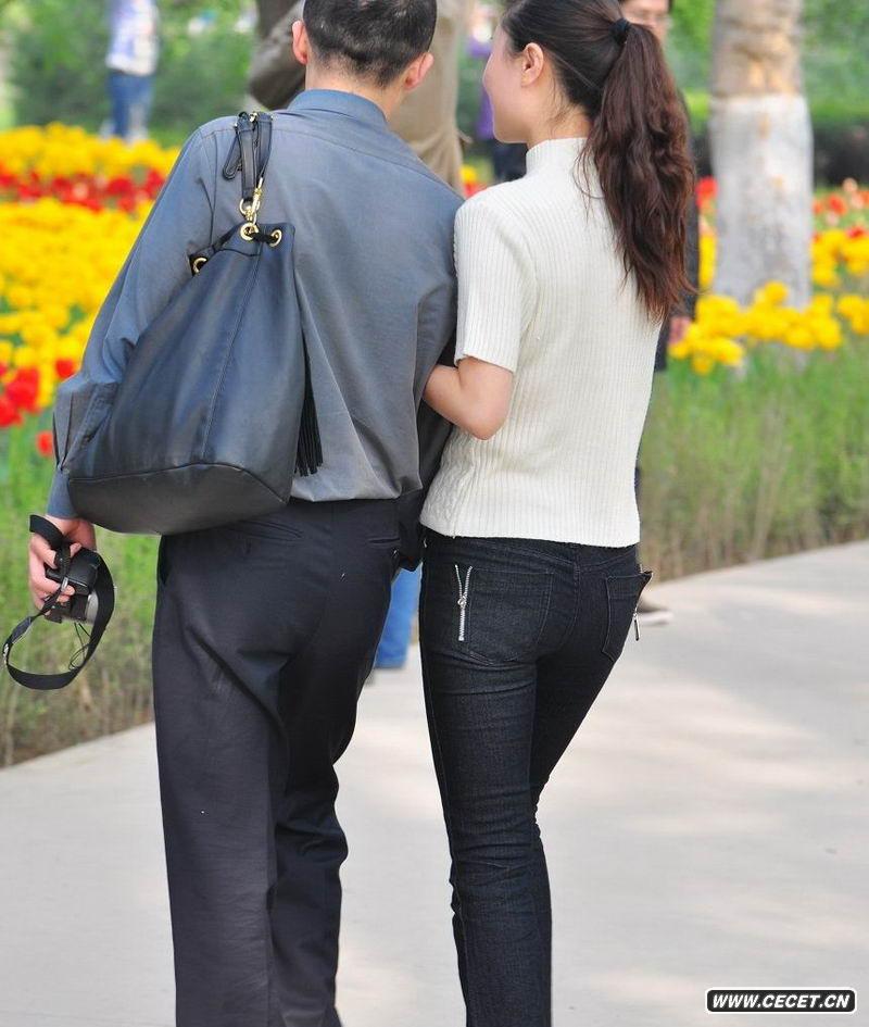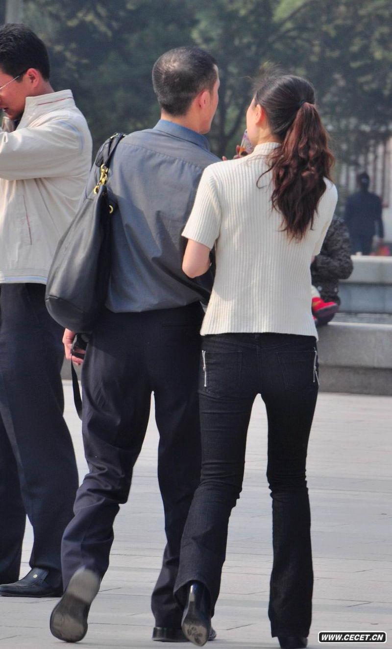 街拍黑色牛仔褲少婦
