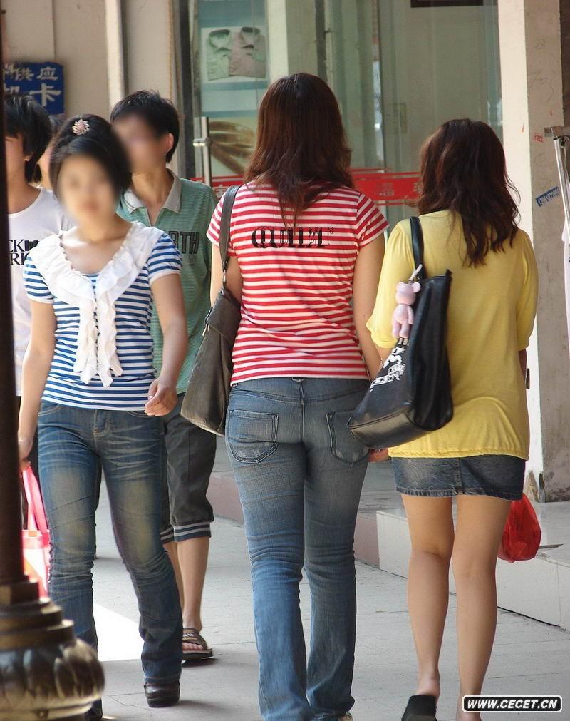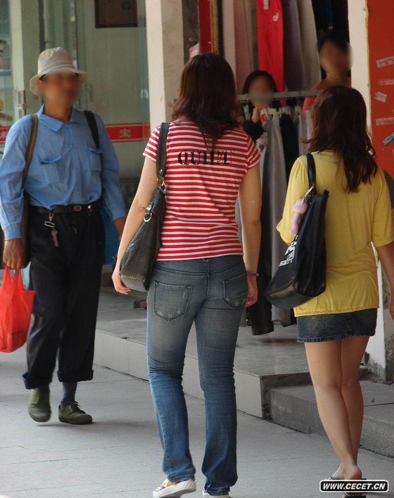 抓拍豐滿(mǎn)的牛仔褲女生