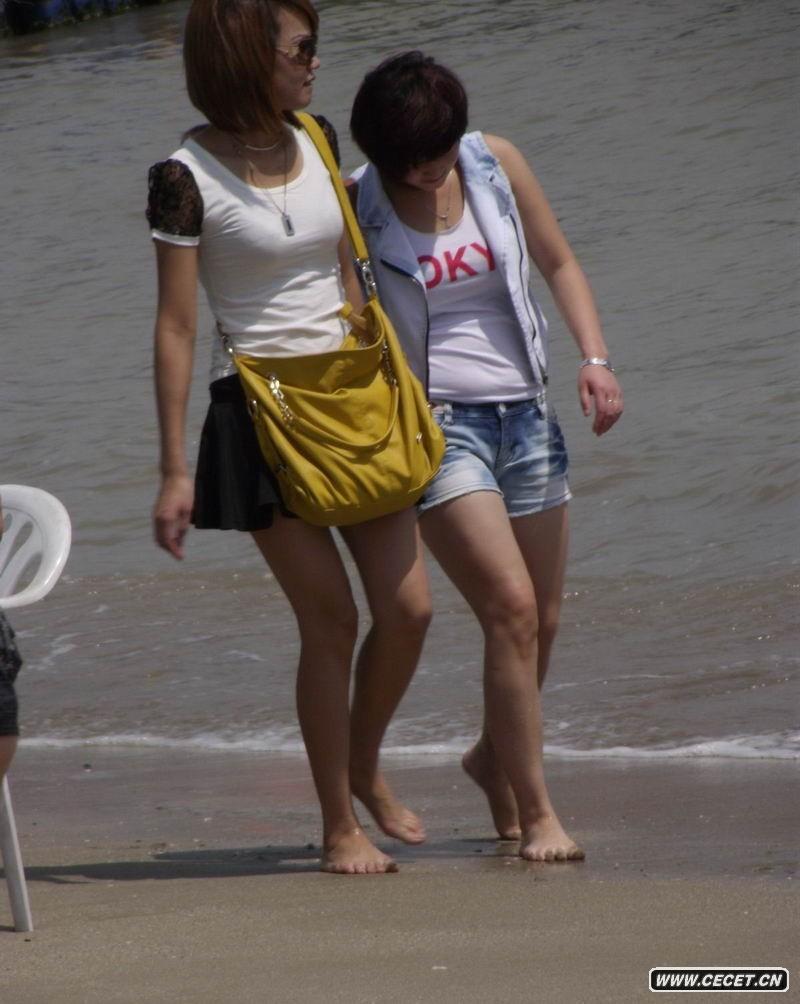 威海海邊玩耍的姐妹