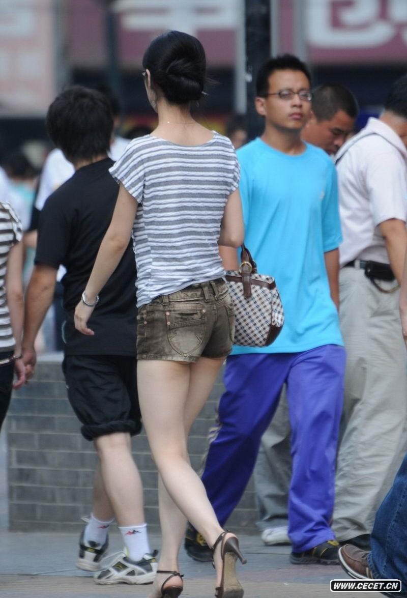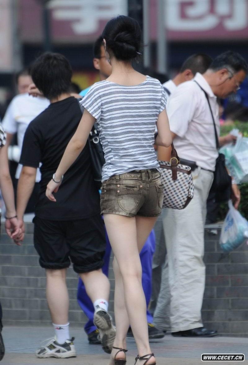 街拍牛仔短褲長(cháng)腿美女