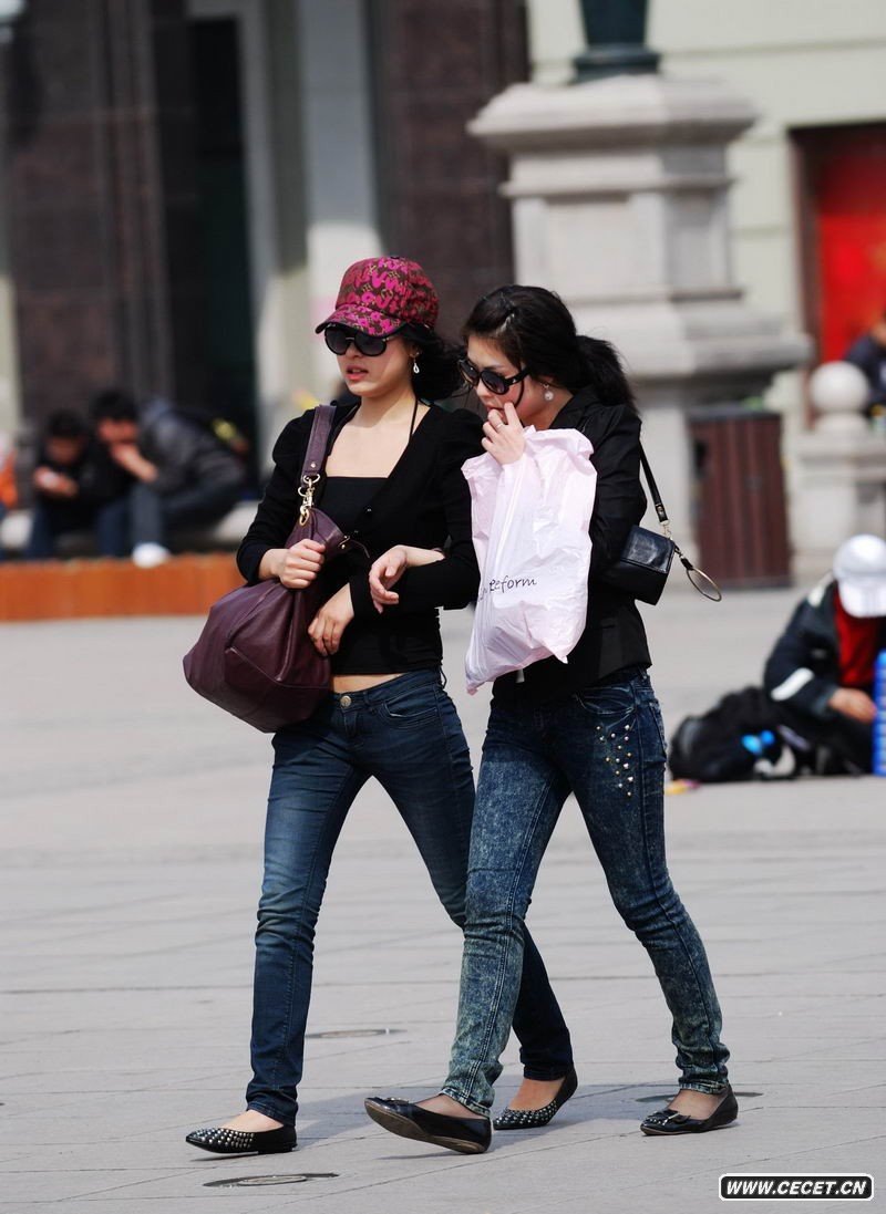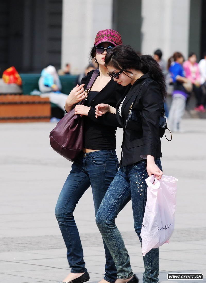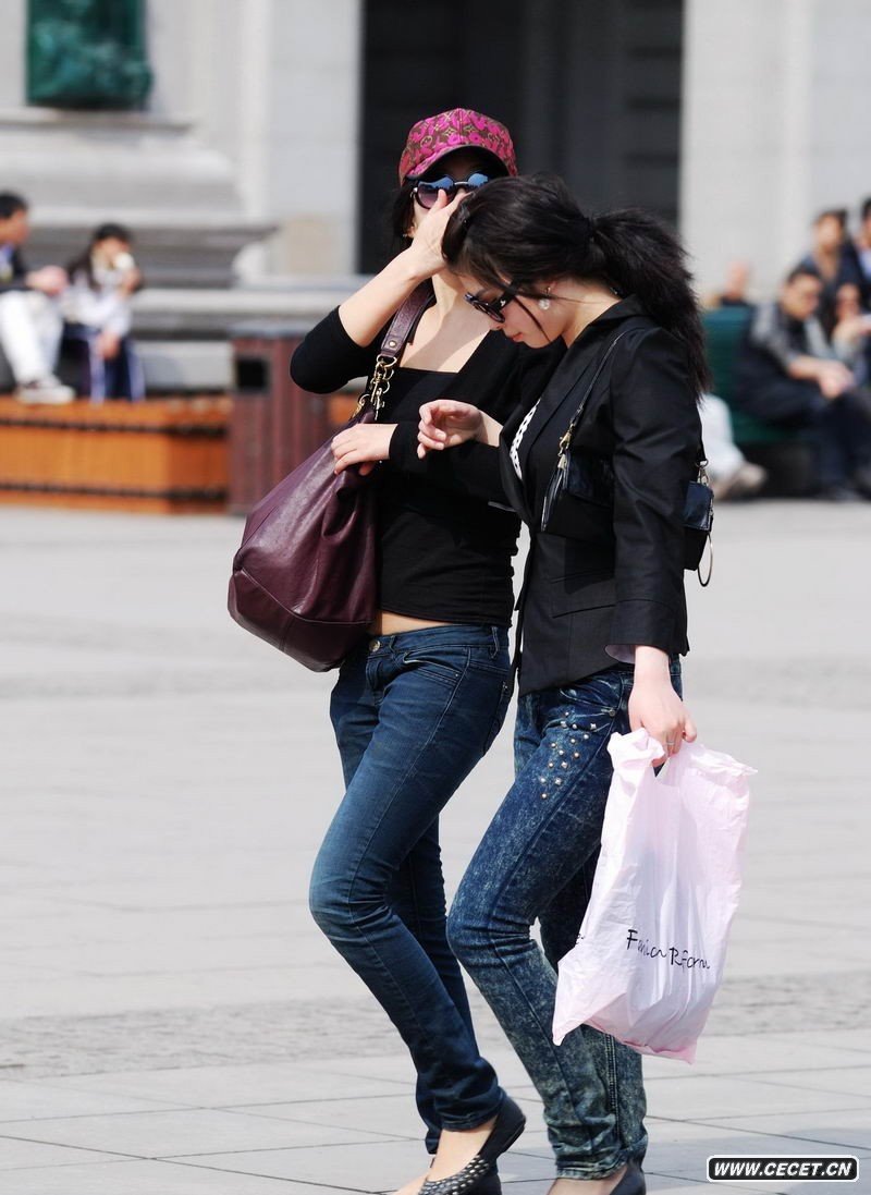 和平廣場(chǎng)拍低腰牛仔女