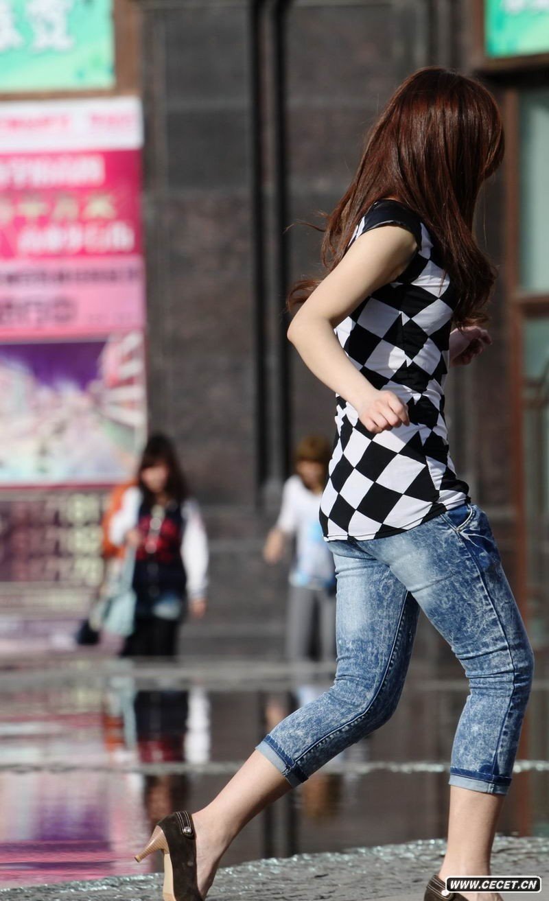 北京街頭拍牛仔褲女孩