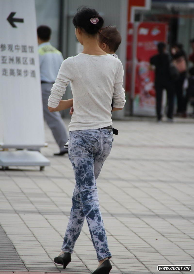 苗條的迷彩牛仔褲少婦