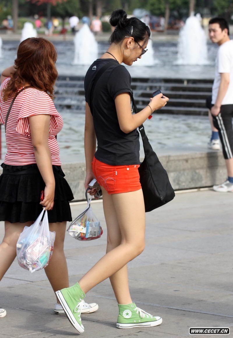 地王廣場(chǎng)紅色短褲少女