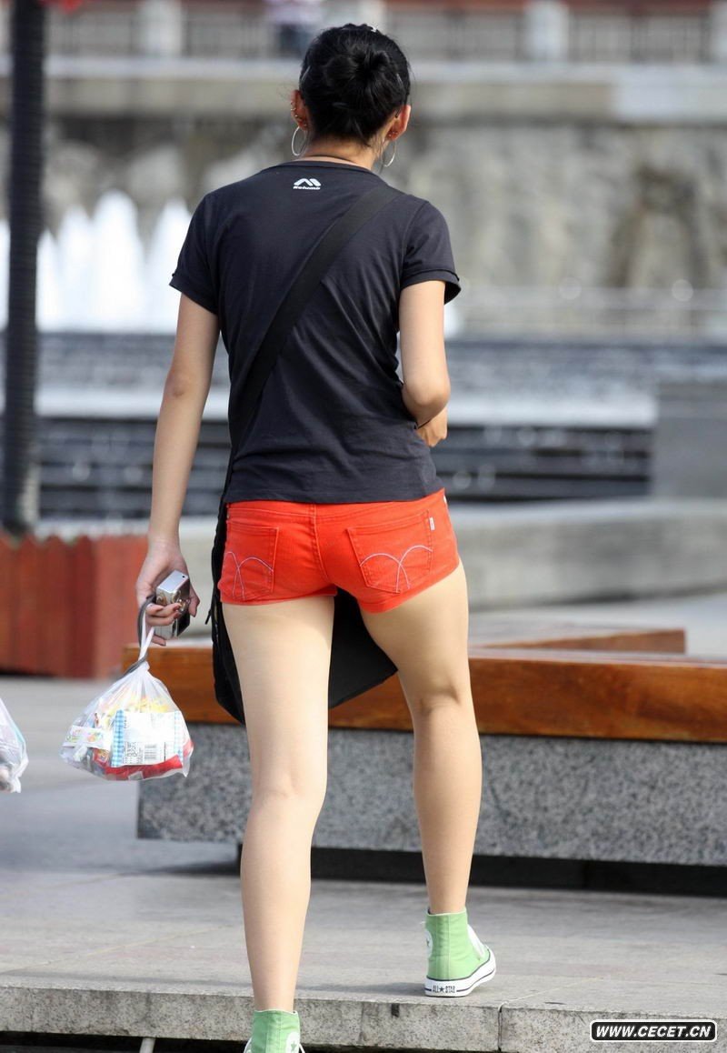地王廣場(chǎng)紅色短褲少女