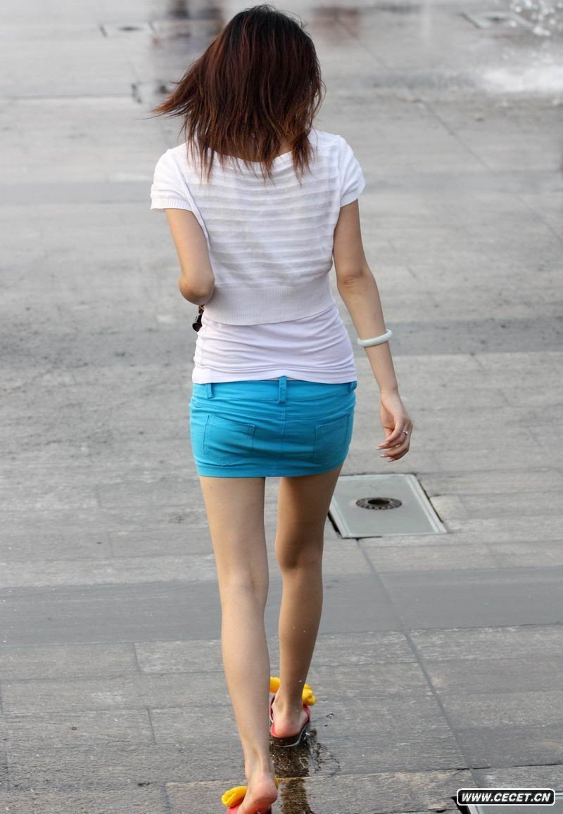 街拍藍色空姐裙美眉