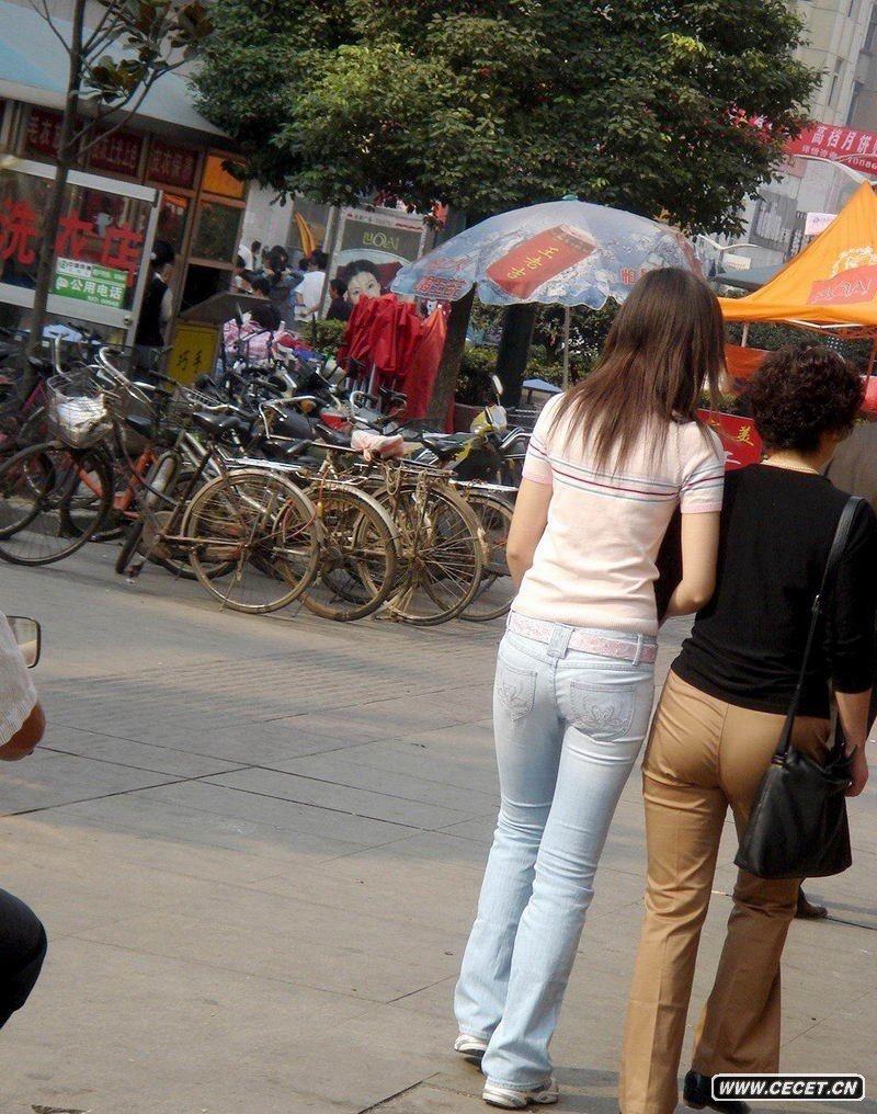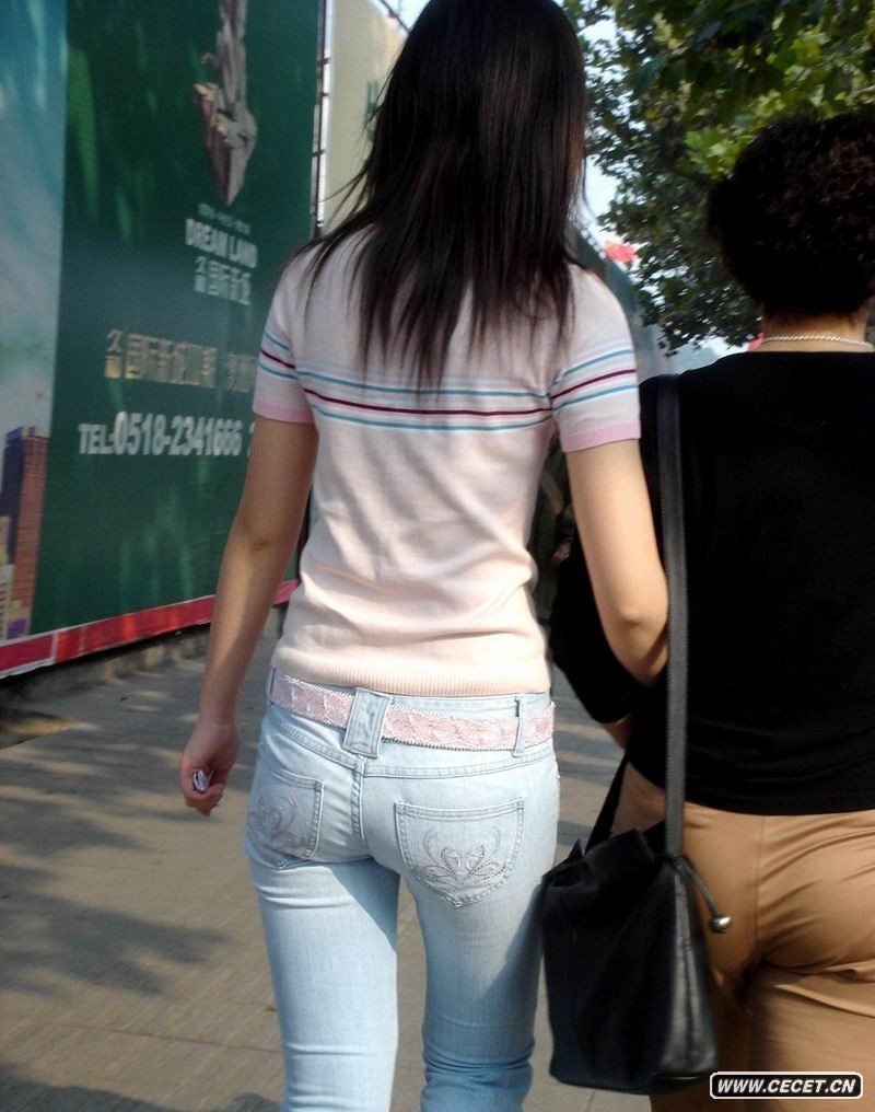 齊東路街拍牛仔褲美女