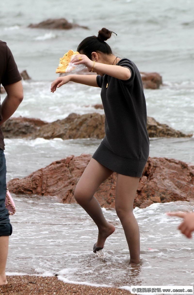臨高縣沙灘的黑絲少女