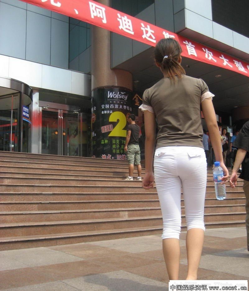 廣場(chǎng)街拍白色緊身褲