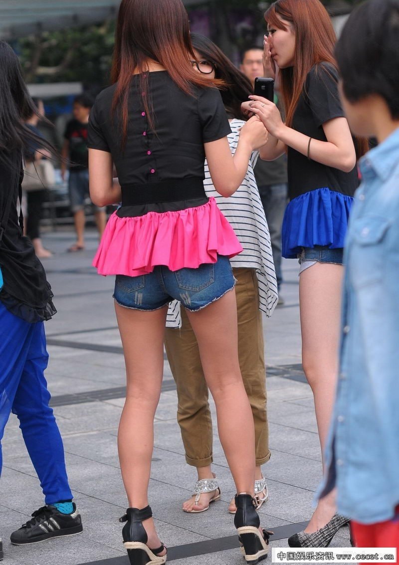 華山路街拍牛仔熱褲美女