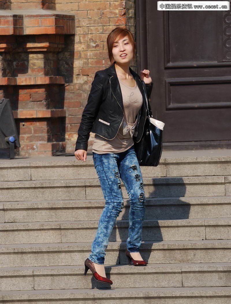 鄭州廣場(chǎng)街拍的牛仔褲美女