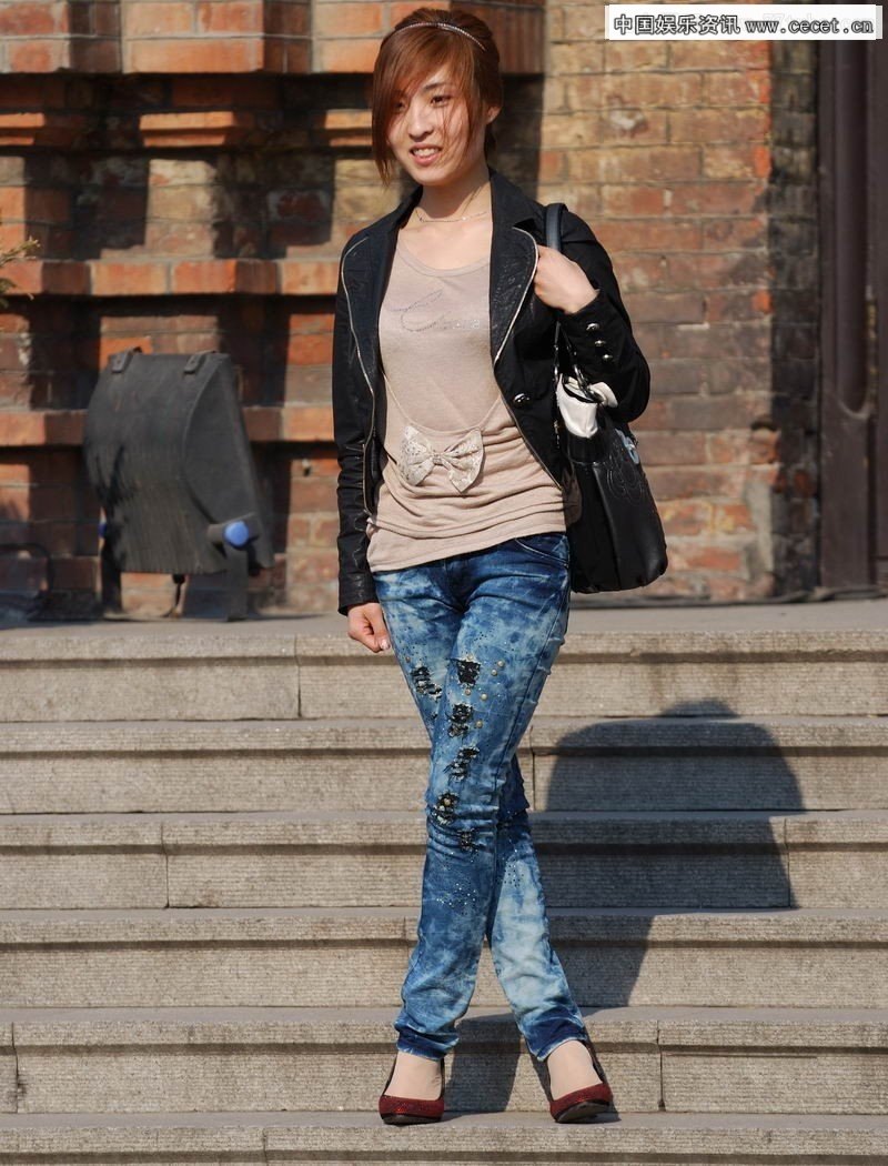 鄭州廣場(chǎng)街拍的牛仔褲美女