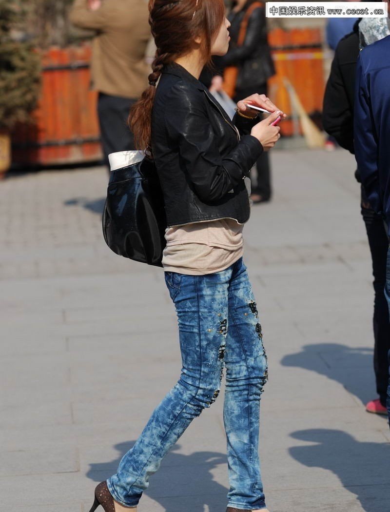 鄭州廣場(chǎng)街拍的牛仔褲美女