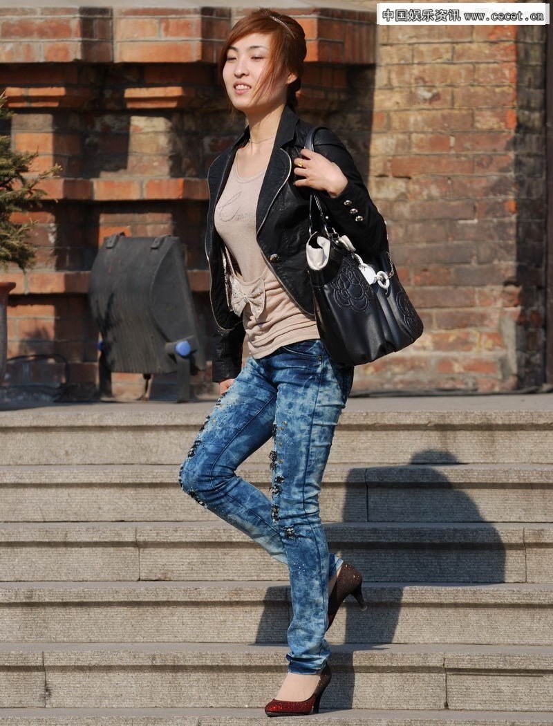 鄭州廣場(chǎng)街拍的牛仔褲美女