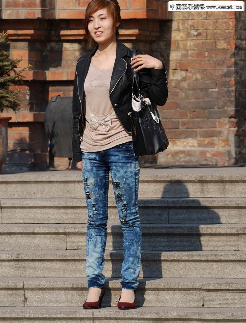 鄭州廣場(chǎng)街拍的牛仔褲美女
