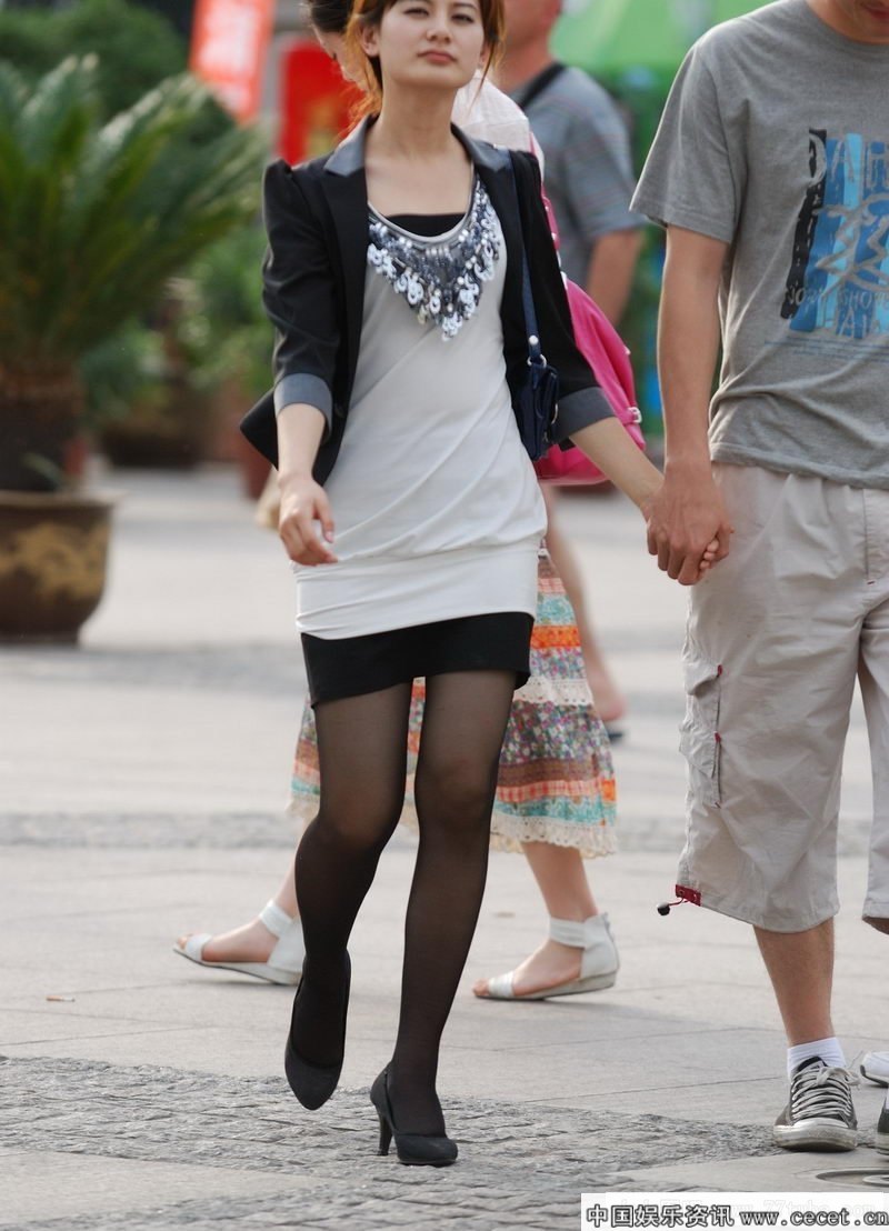 米蘭廣場(chǎng)街拍制服裙黑絲襪美女