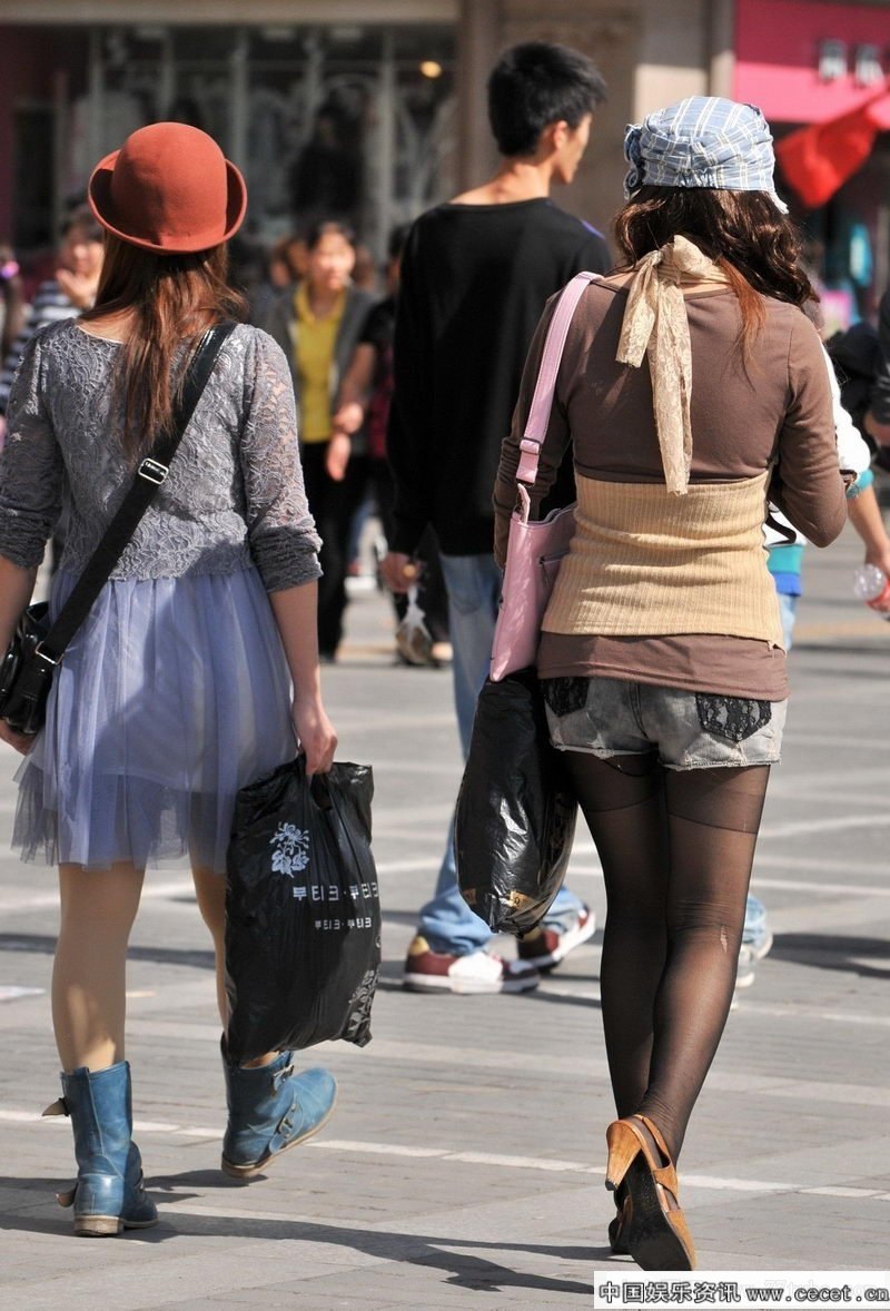 望岳路街拍發(fā)短信的黑絲襪MM