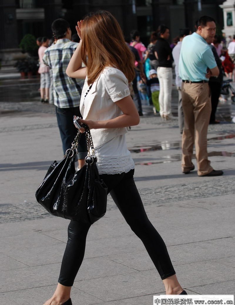 棕櫚泉廣場(chǎng)街拍緊身皮褲少婦