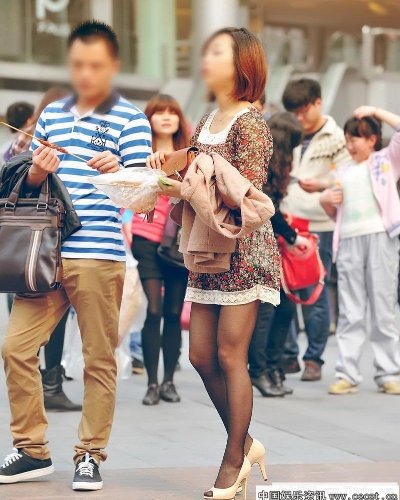 街拍吃烤羊肉串的絲襪美少婦