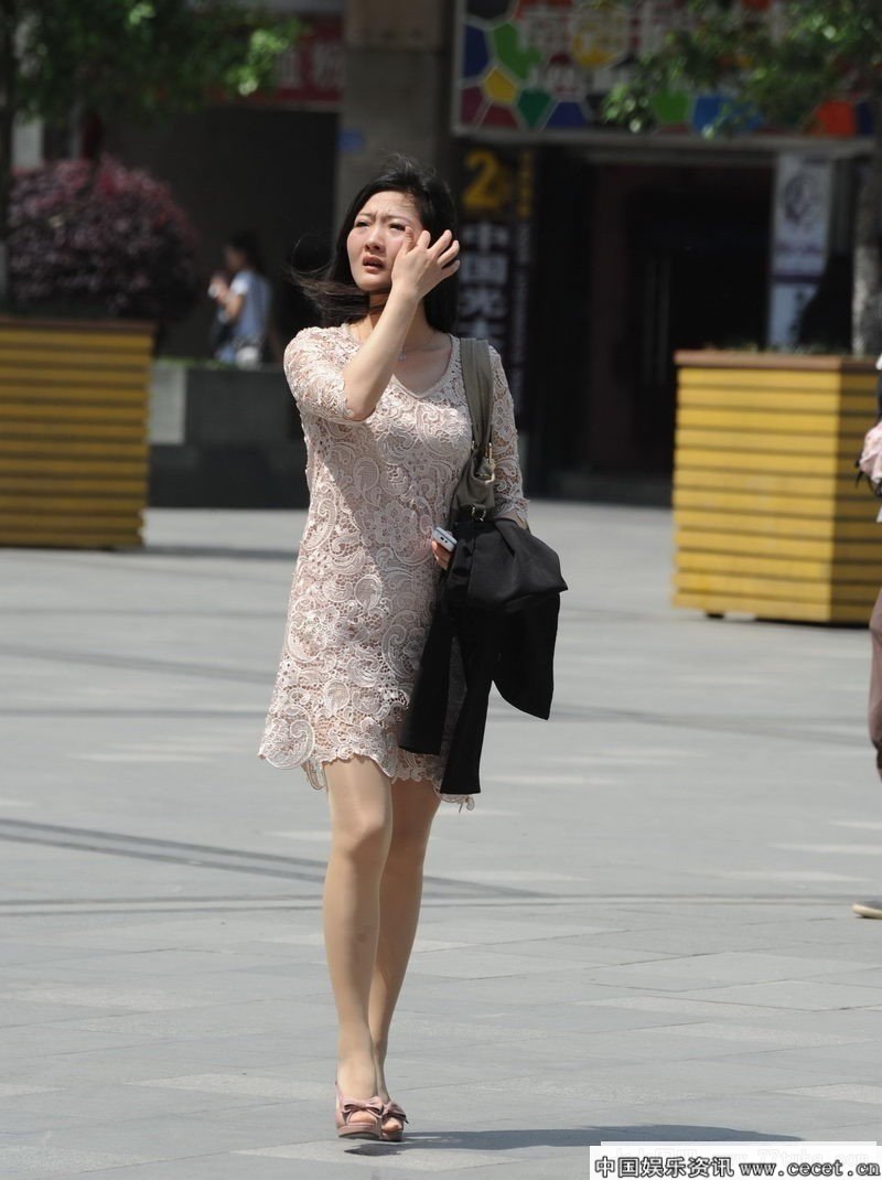 文化廣場(chǎng)上街拍透紗薄裙美少婦