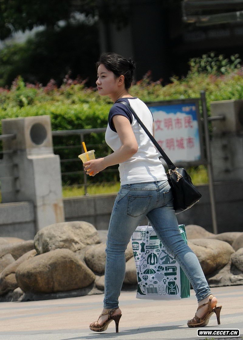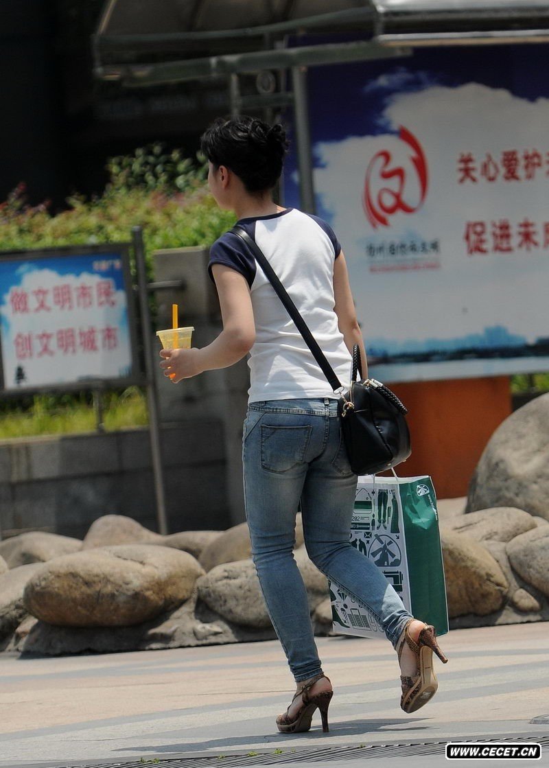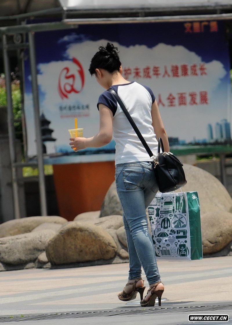 青少年宮廣場(chǎng)街拍甜美牛仔美女