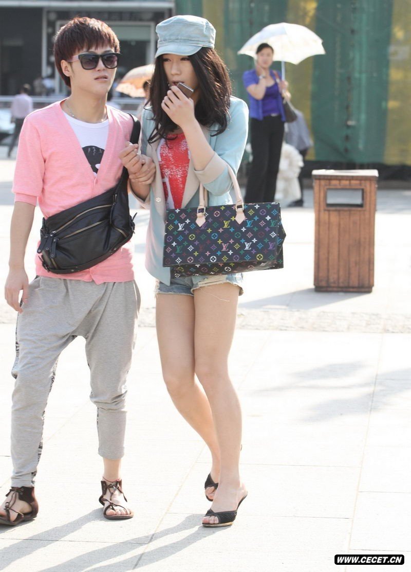 文博廣場(chǎng)街拍破牛仔熱褲美女
