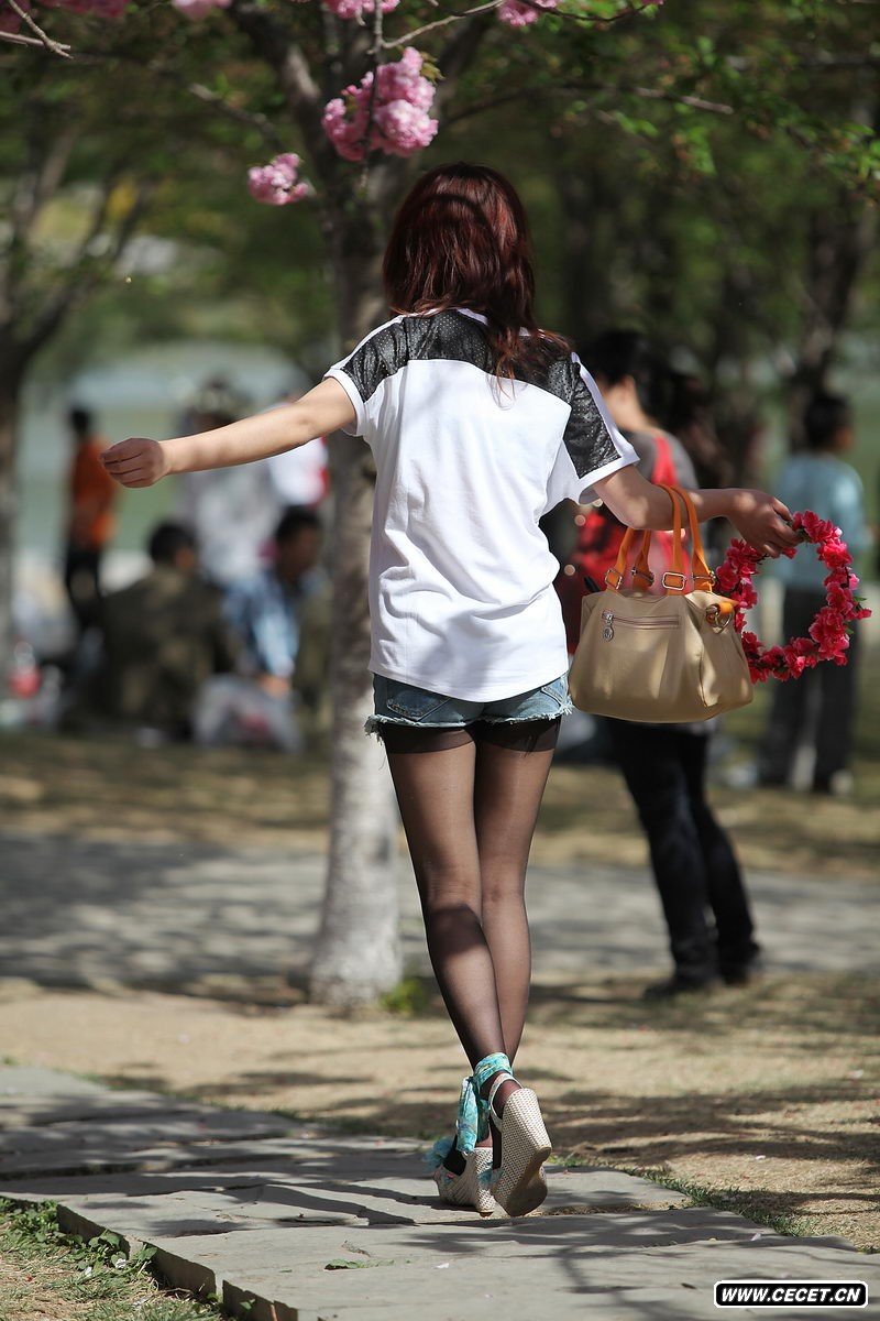 北碚公園看桃花的黑絲襪美眉