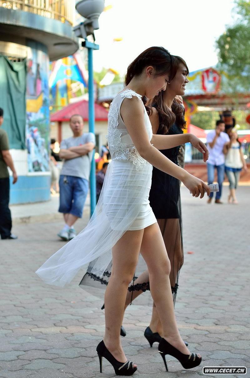 街拍兩個(gè)穿著(zhù)大膽的薄紗裙美眉