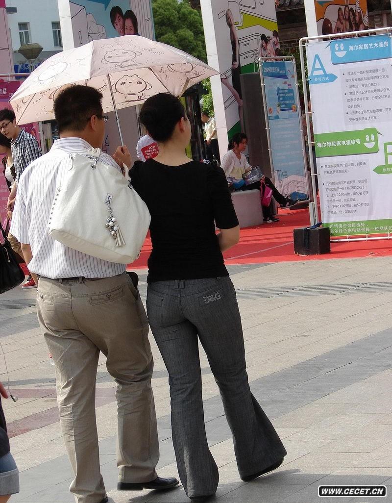 旅游景點(diǎn)街拍豐滿(mǎn)的緊身褲美女