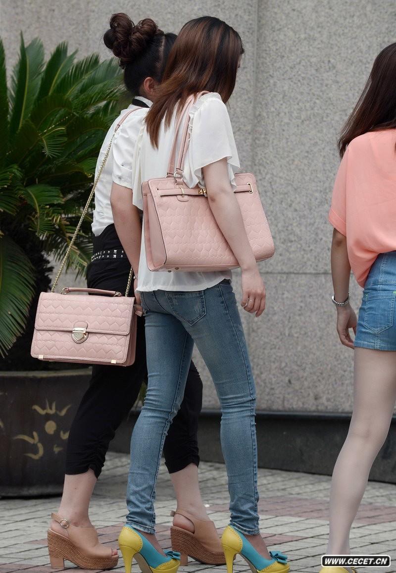 街拍時(shí)尚修身歐版牛仔褲美眉