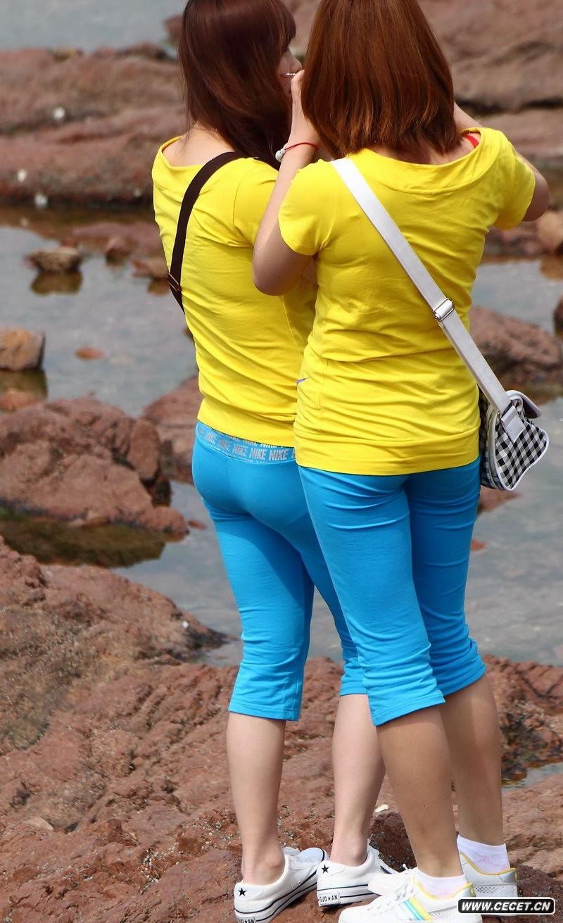 大連海邊抓拍的兩個(gè)緊身褲女孩