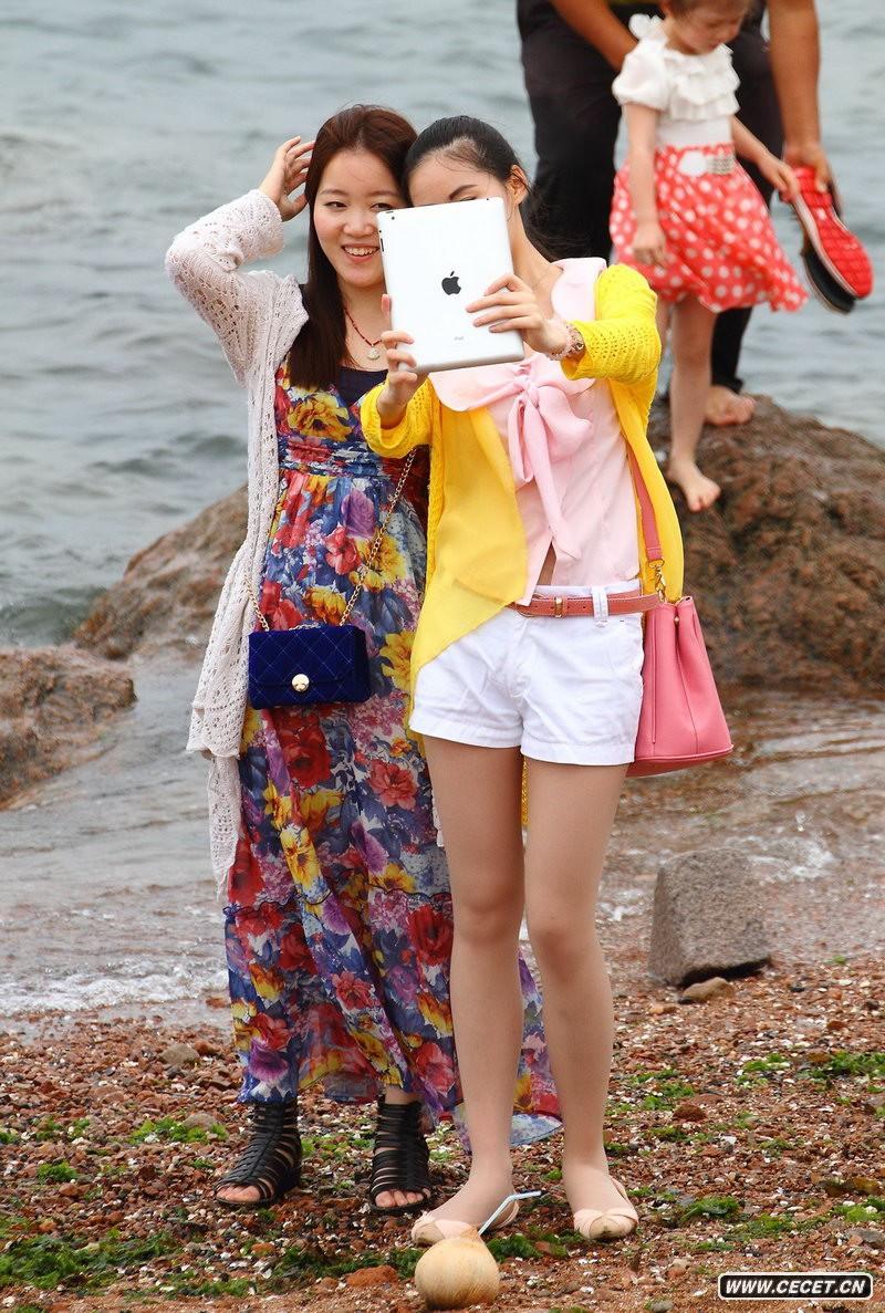 老虎灘抓拍漂亮的長(cháng)腿妹子