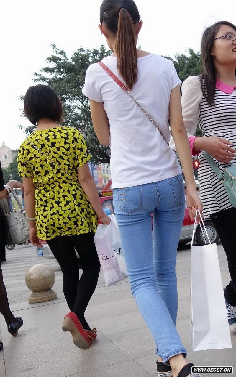 醫學(xué)院跟拍的蘭色牛仔褲女生