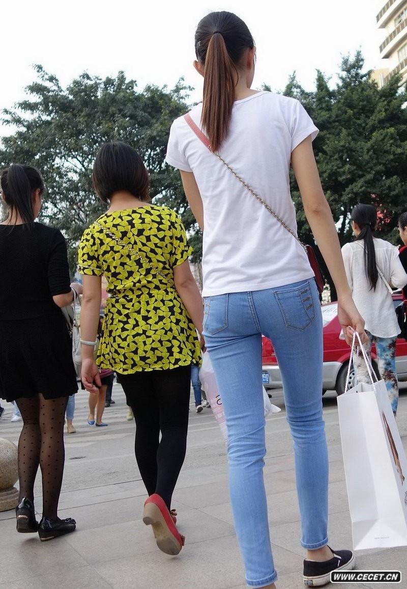 醫學(xué)院跟拍的蘭色牛仔褲女生