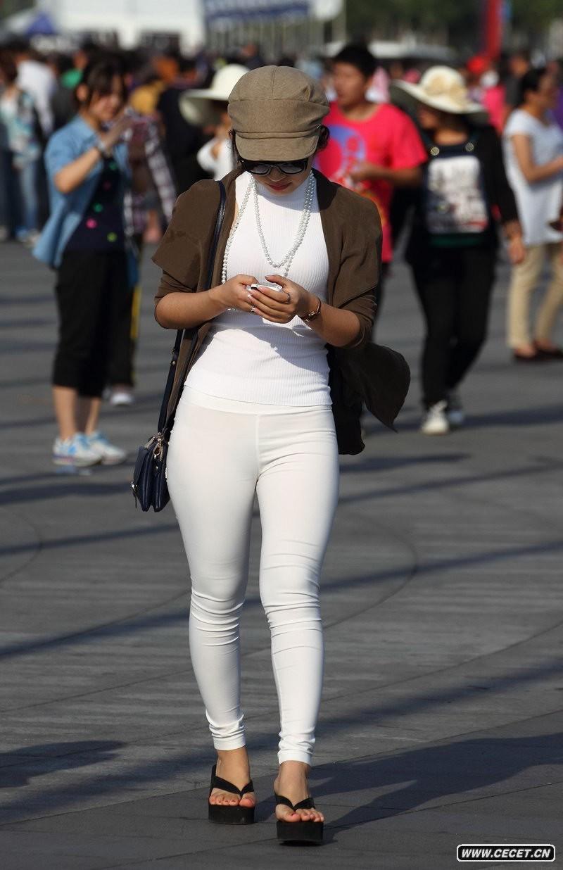 白色緊身褲女人突顯嬌人好身材