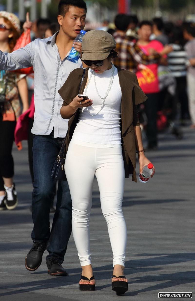 白色緊身褲女人突顯嬌人好身材